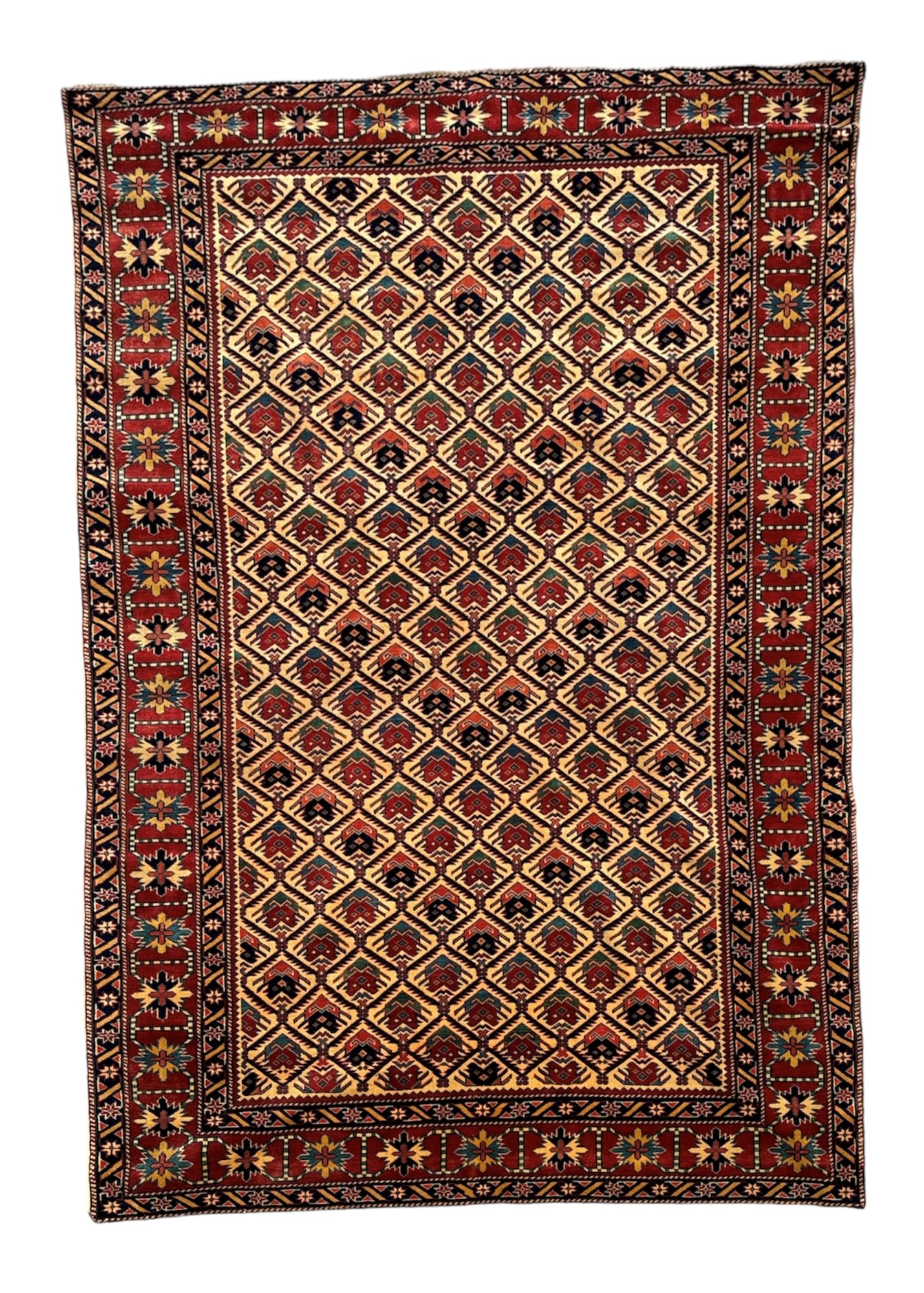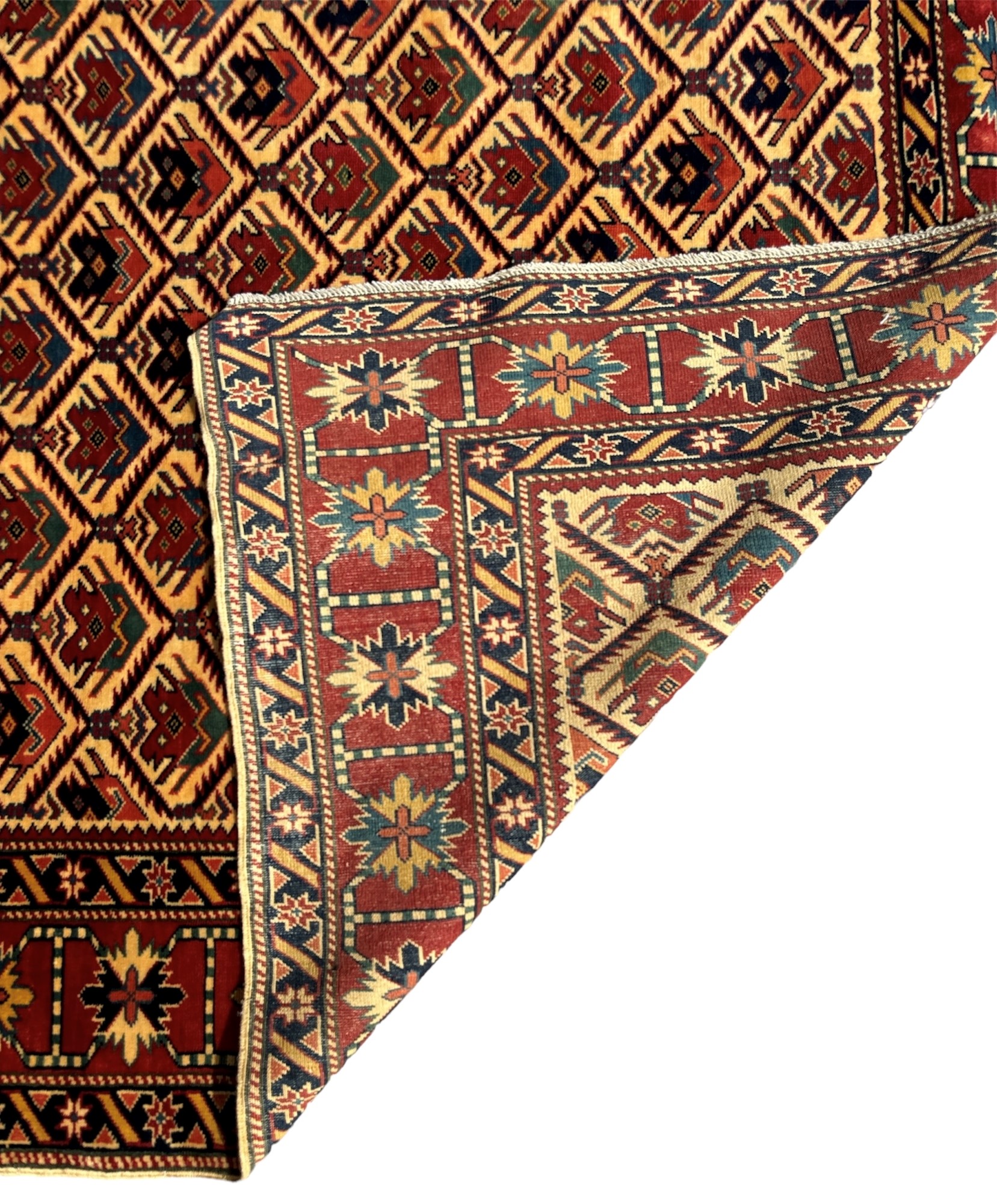 Tappeto Bukhara inizio XX secolo 236 x 161 cm a fondo ocra e bordatura...