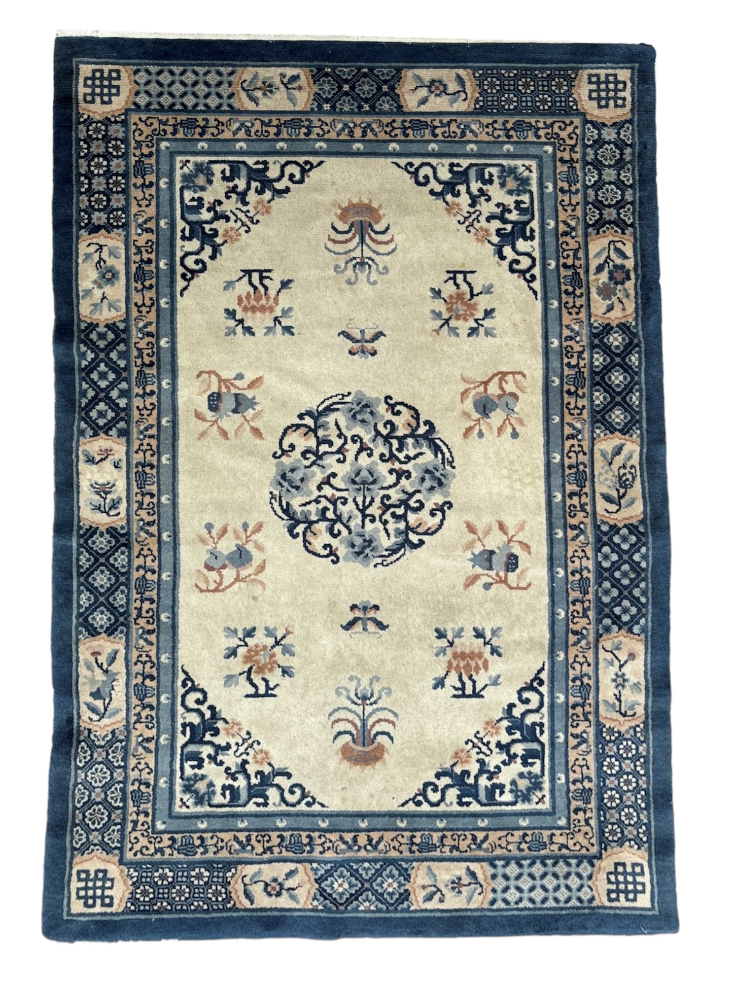 Tappeto Cina 180 x 125 cm a decorazioni floreali e geometriche, a fondo...