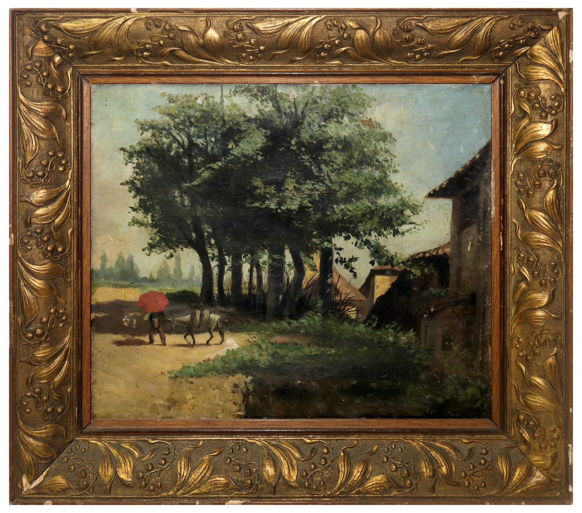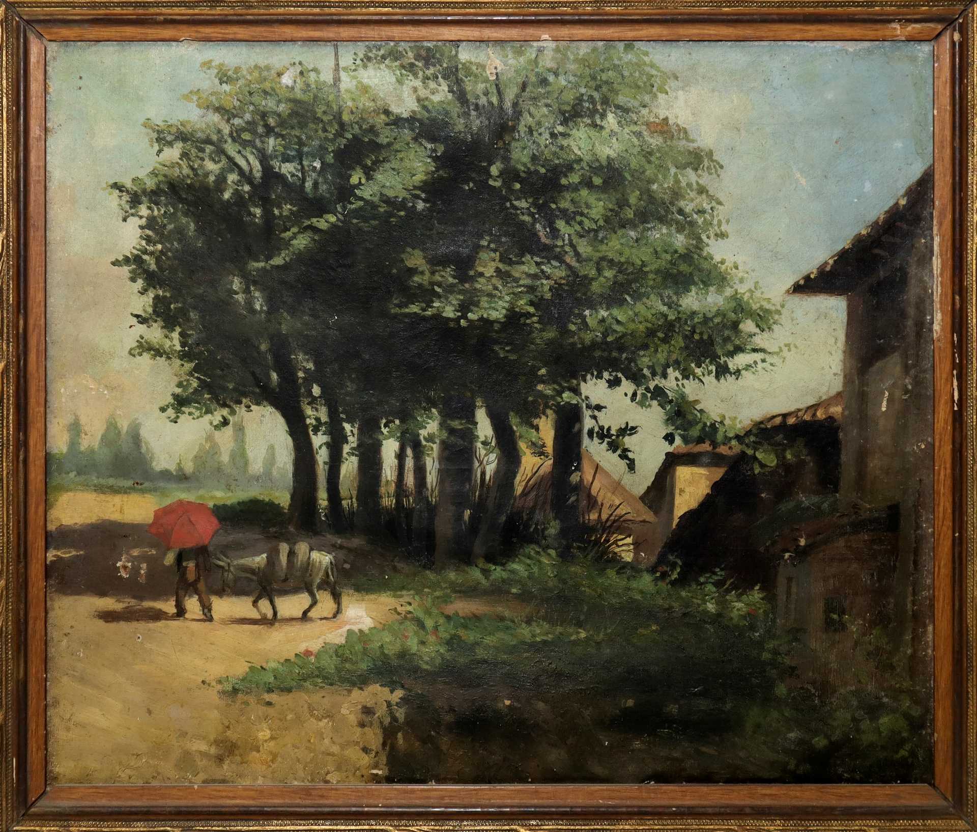 Lotto 19 | Paesaggio con case e alberi e uomo con asino, nineteen° secolo