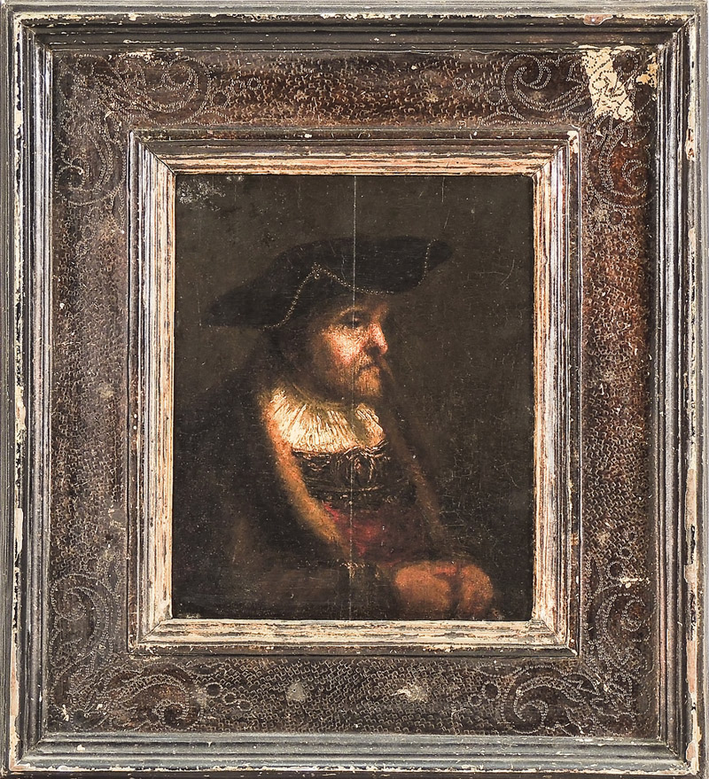 SCUOLA OLANDESE DELL'INIZIO DEL XVII SECOLO - DUTCH SCHOOL OF BEGINNING OF 17TH CENTURY Ritratto di Gentiluomo - Portrait of a Gentleman olio su tavola - oil on panel, in cornice, difetti cm 25,5x23