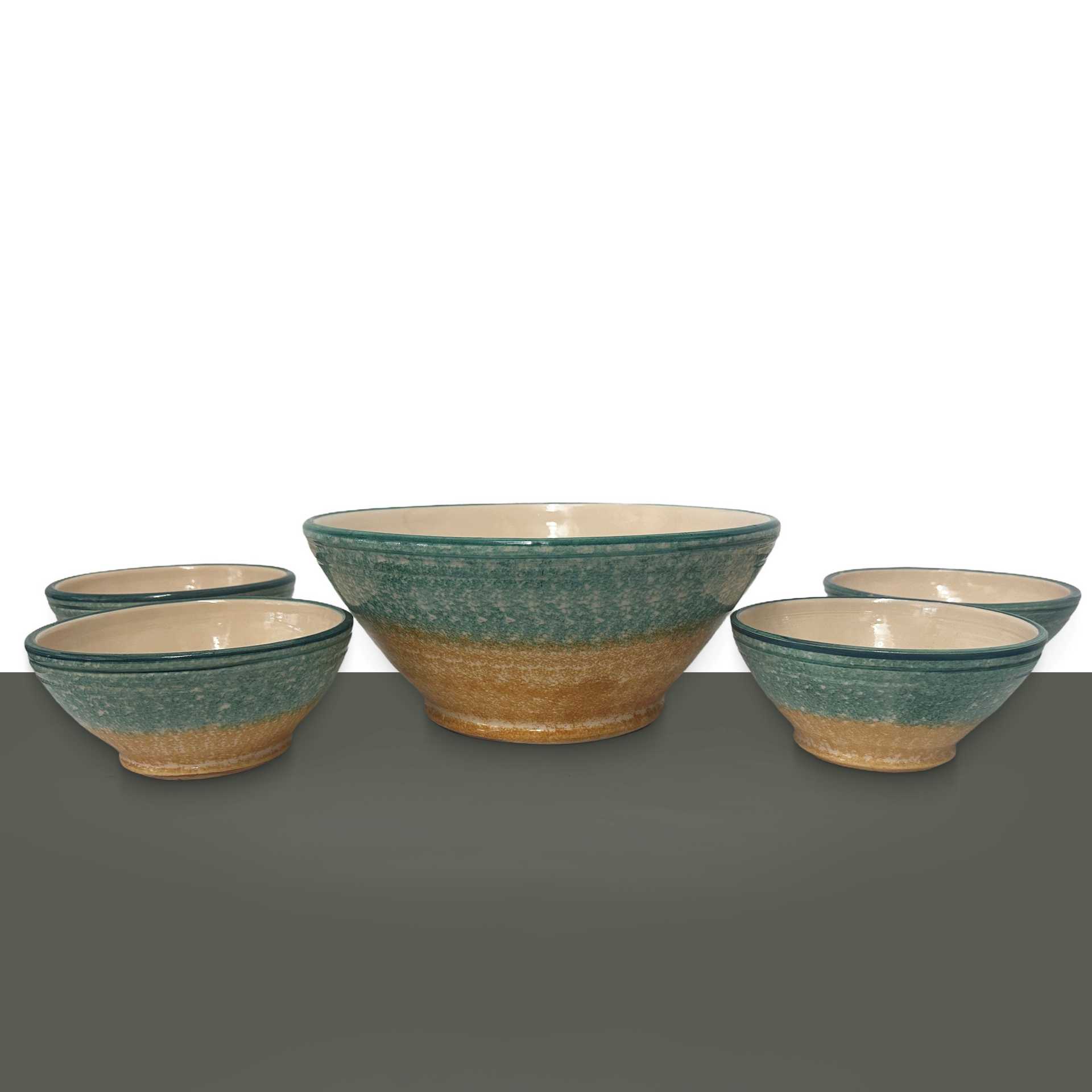 Lotto 45 | Insalatiera con quattro ciotole in maiolica policroma, 70's