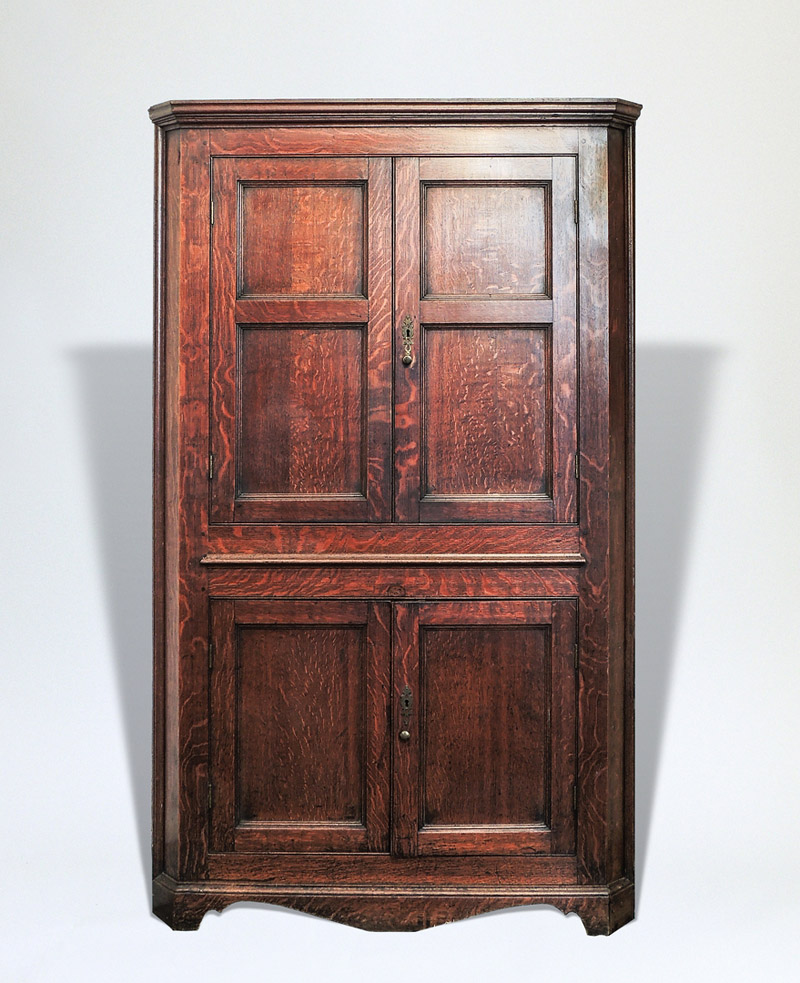 ANGOLIERA IN ROVERE A DUE CORPI - CORNER CABINET fronte a quattro sportelli scorniciati, piedi a mensola h cm 190x120