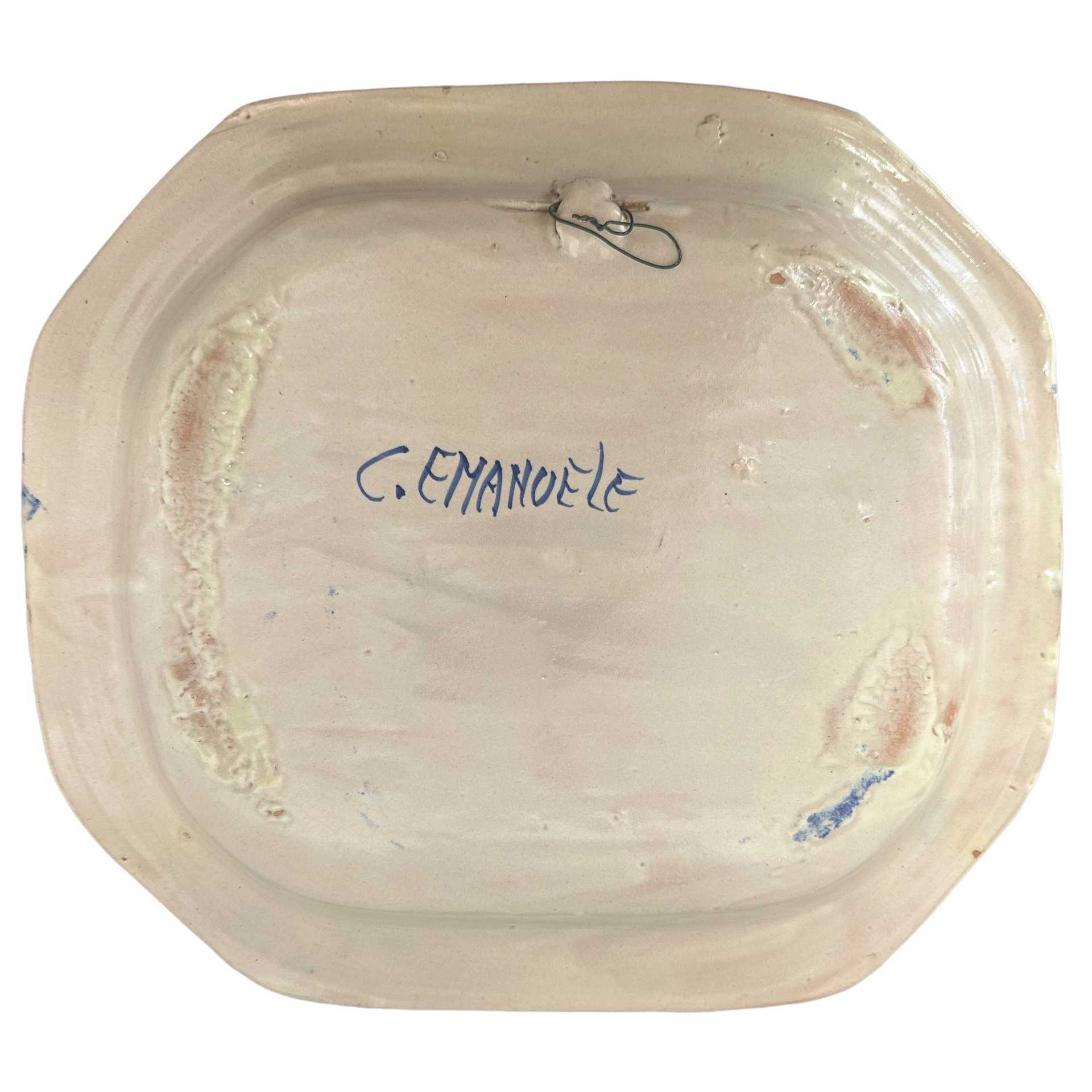 Piatto ottagonale in maiolica policroma decorato con limoni, 70's cm 34X38 Firmato dietro C. EmanueleFirmato dietro C. Emanuele