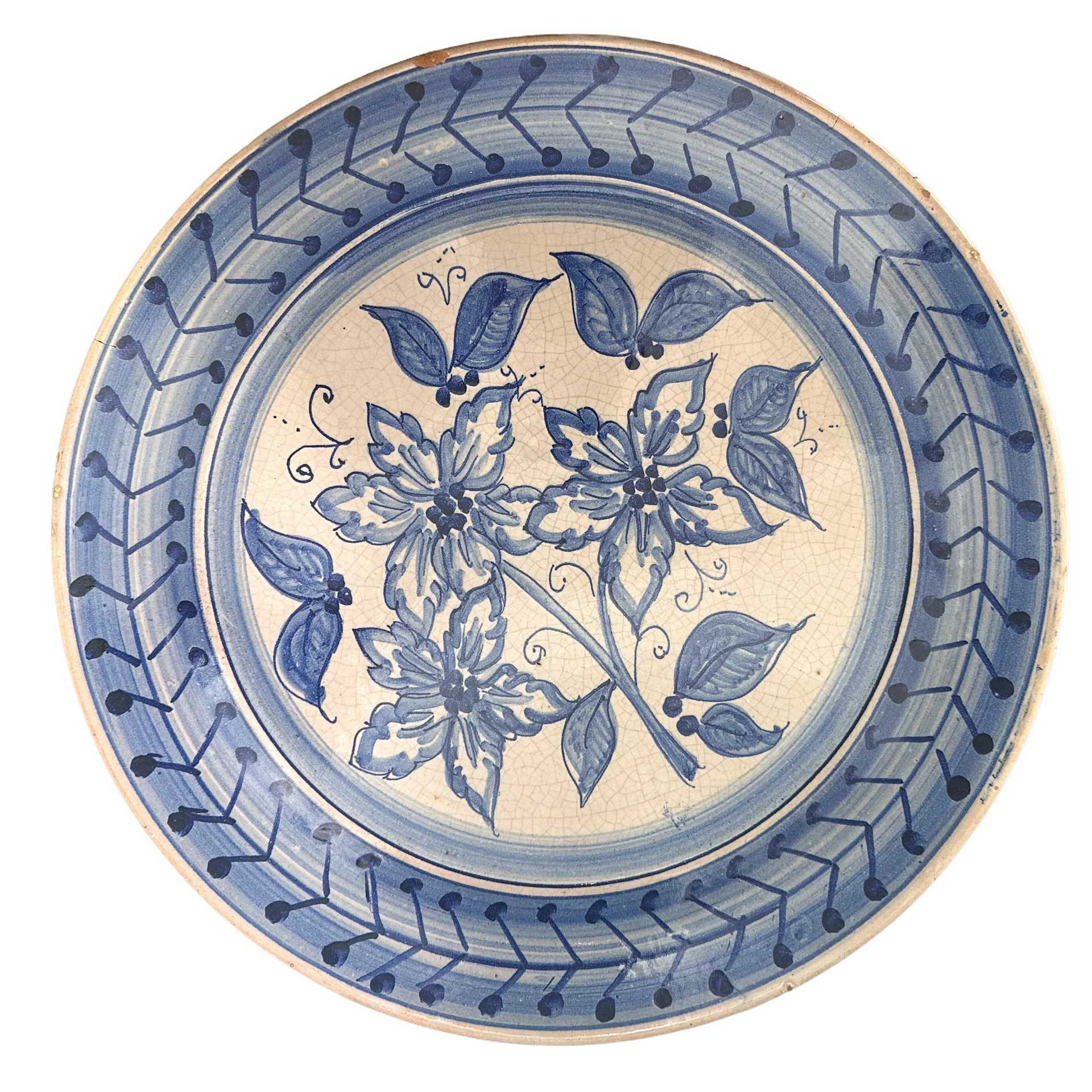 Piatto in maiolica Santo Stefano di Camastra decorato a motivi floreali blu