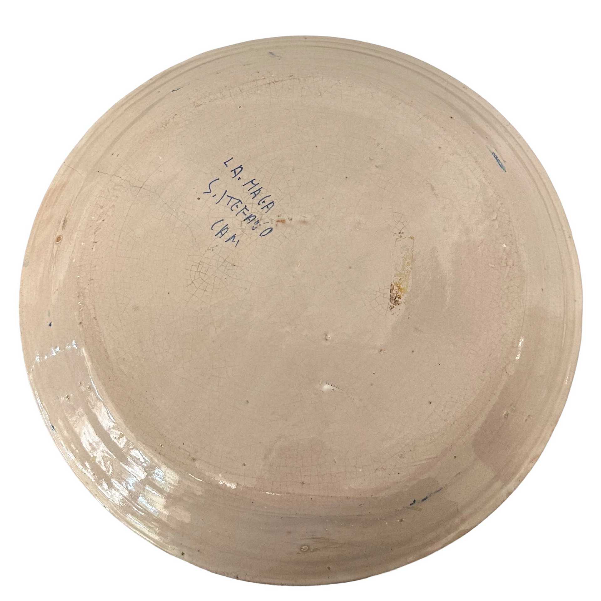 Piatto in maiolica Santo Stefano di Camastra decorato a motivi floreali blu diametro cm 44 Firmato sul fondo La. MagaFirmato sul fondo La. Maga