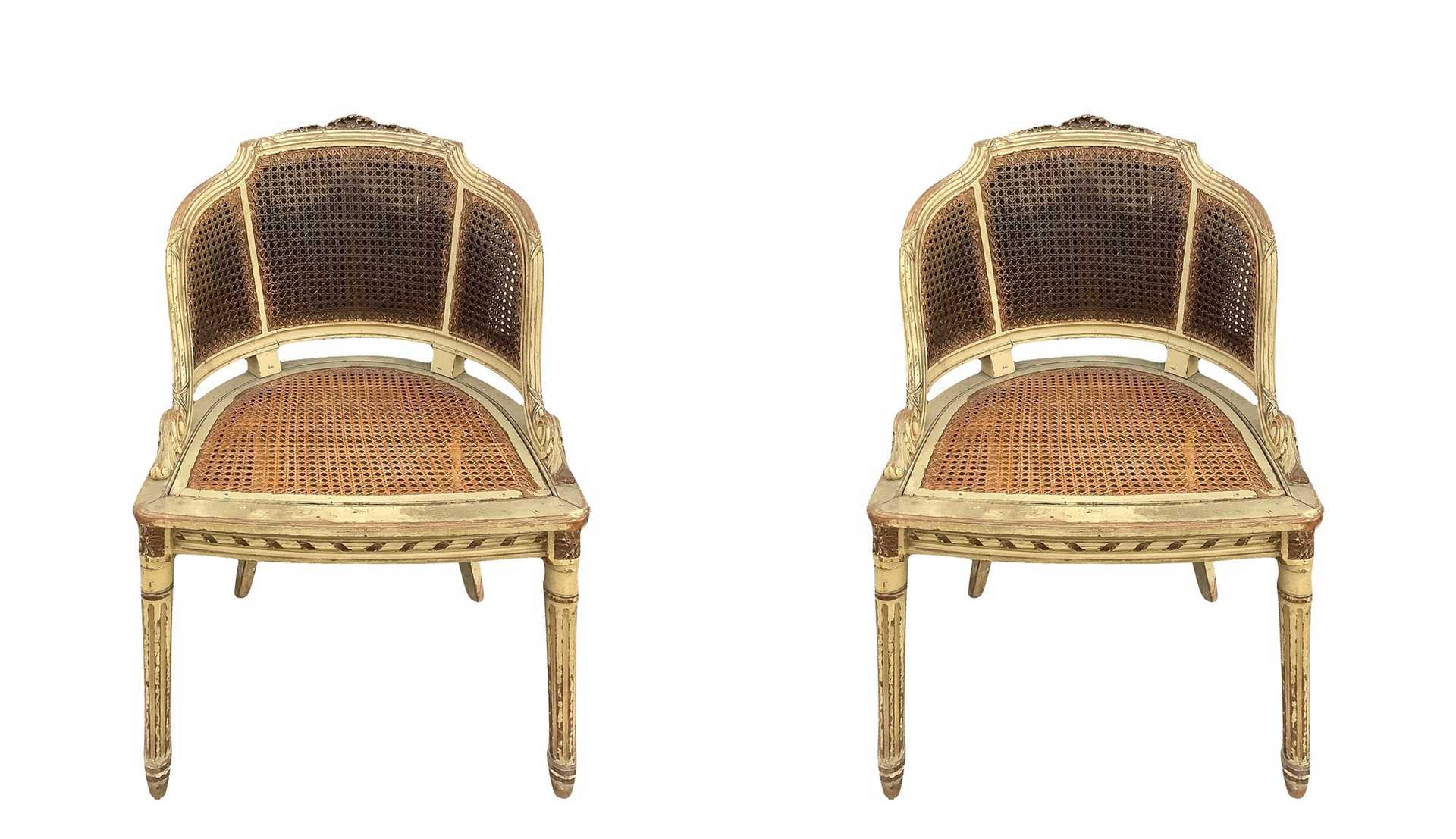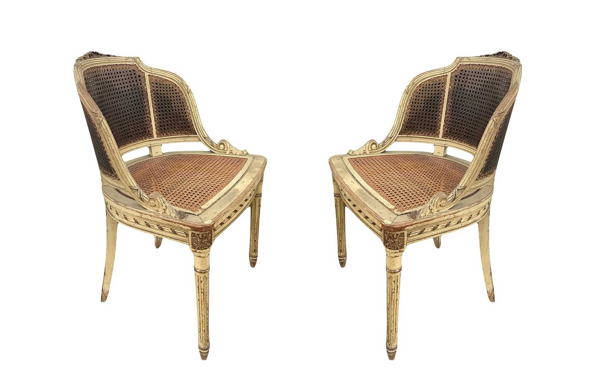 Coppia di poltroncine laccate, Nineteen° secolo H 84 ;Larghezza 50, Profondità 45 Con spalliera e piano in paglia di Vienna Con spalliera e piano in paglia di Vienna