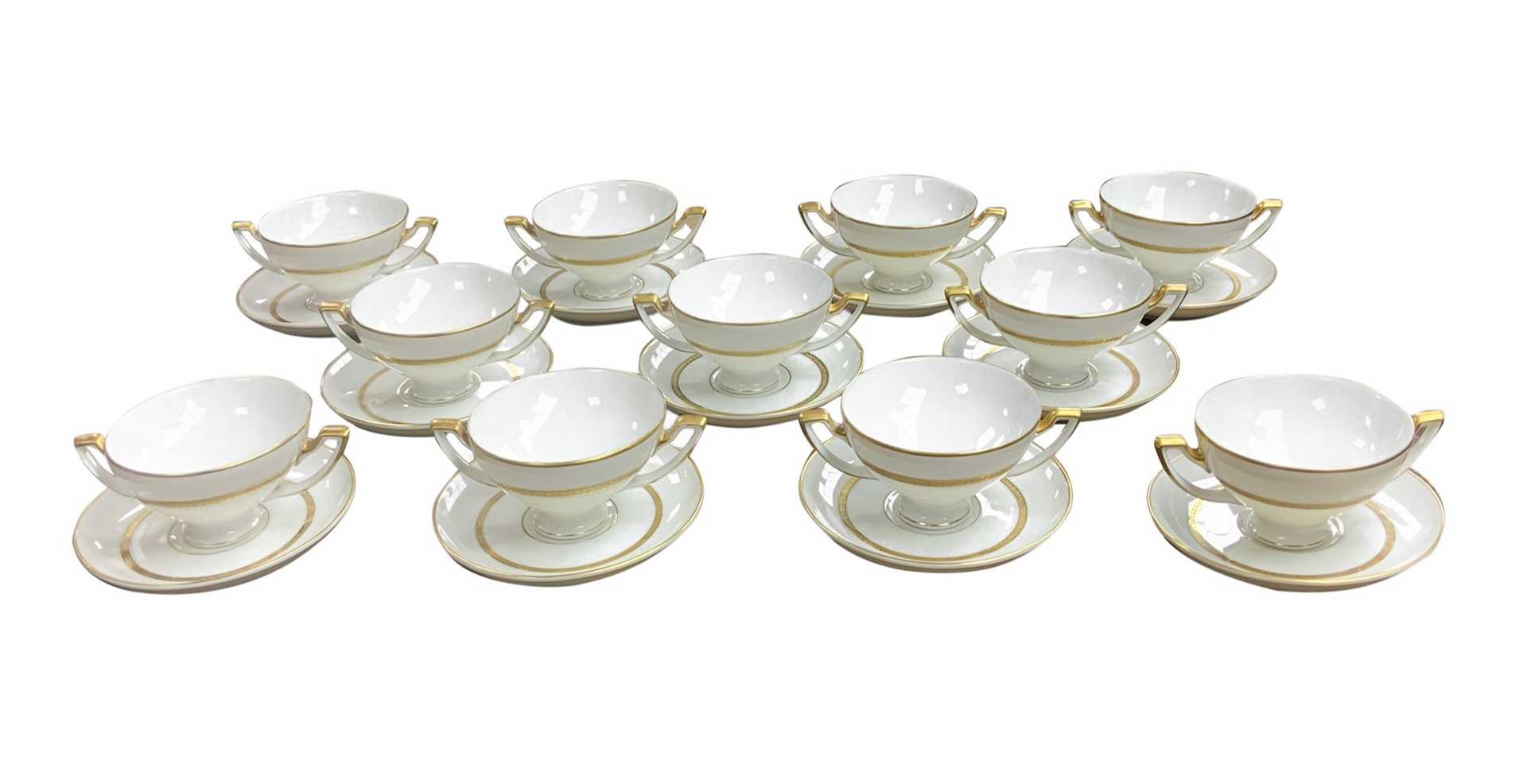 H & C ‘Selb Bavaria’ Heinrich - Servizio consommé Porcellana In porcellana con bordo interno in oro. Composto da 11 tazzine, 11 piattini