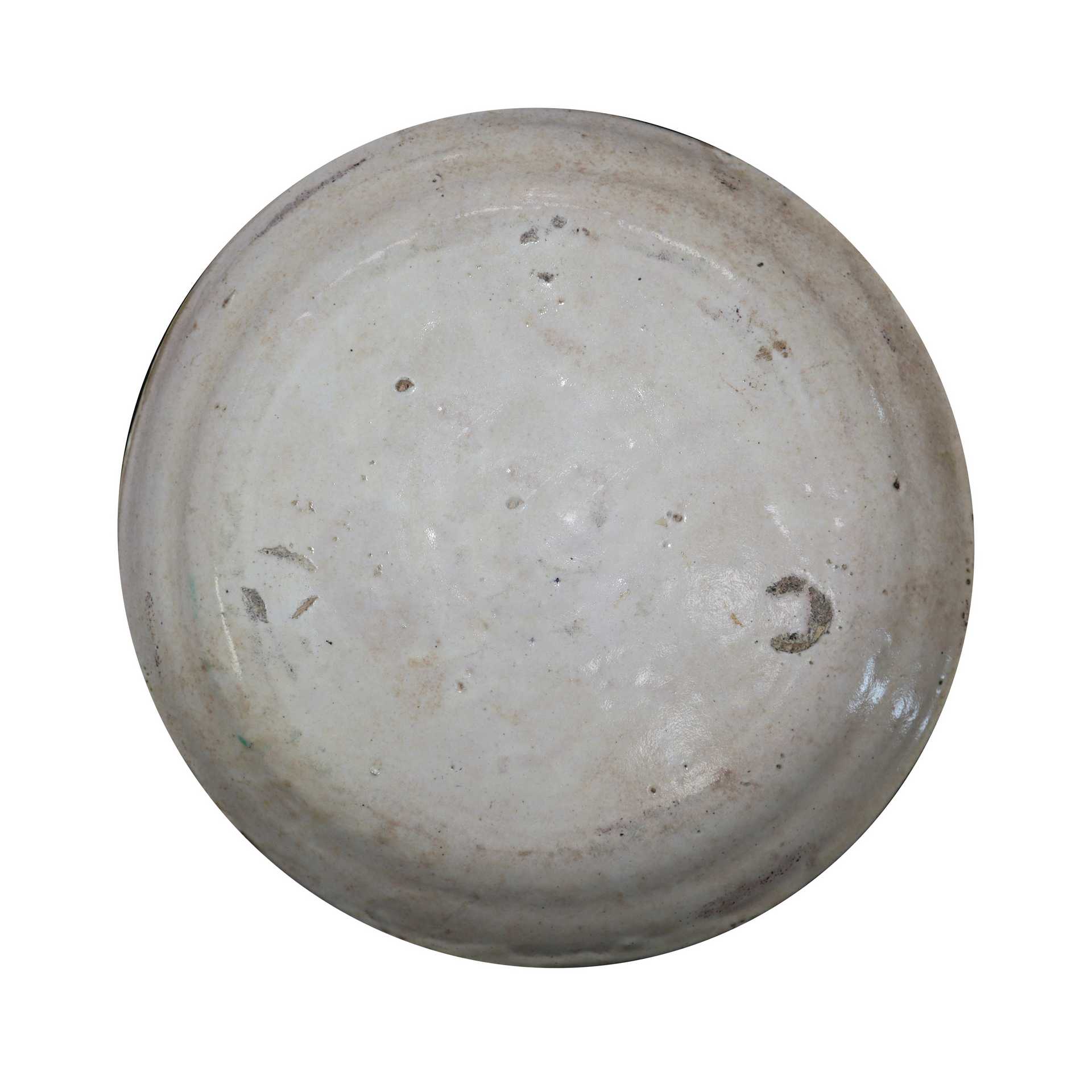 Coppia di piatti in maiolica di Caltagirone spugnati alla circonferenza con fiore al centro, Metà 20° secolo