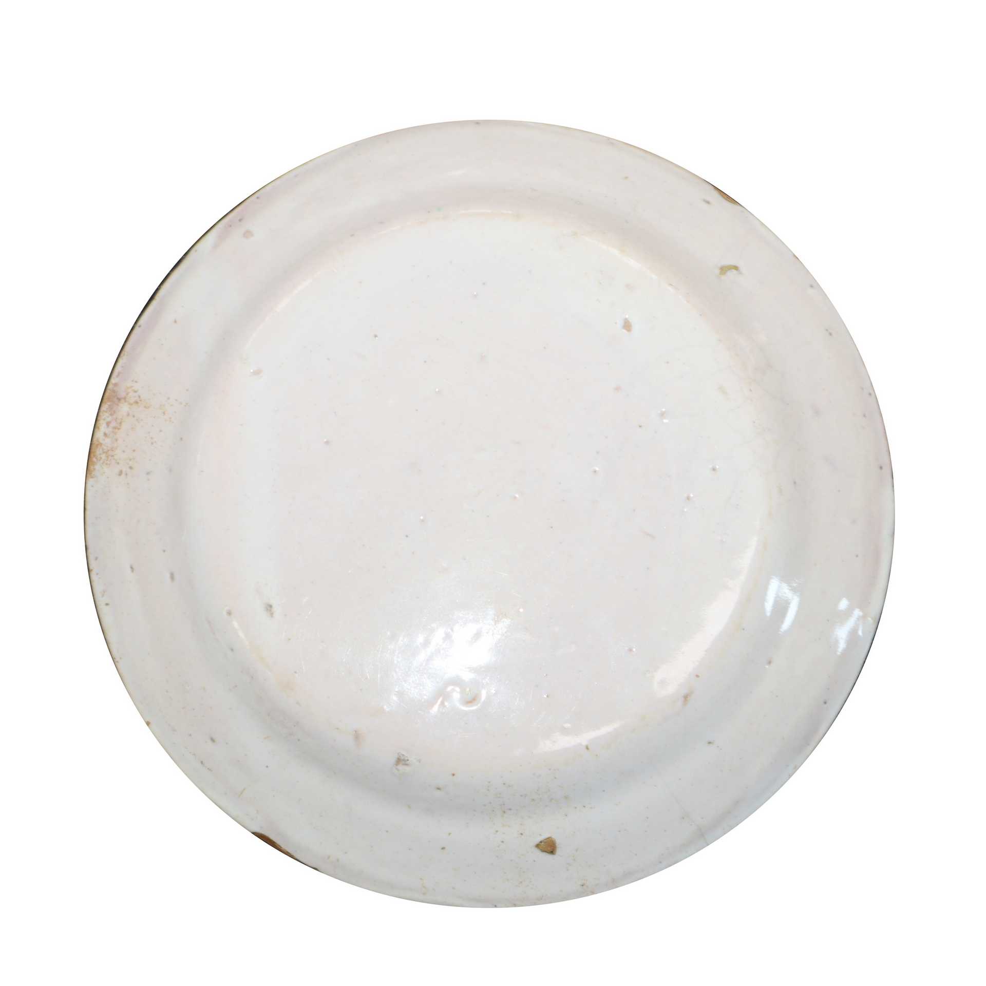Coppia di piattini in maiolica di Caltagirone, circonferenza in manganese con fiori giallo e azzurro, fiore al centro, 20° secolo diametro cm 18