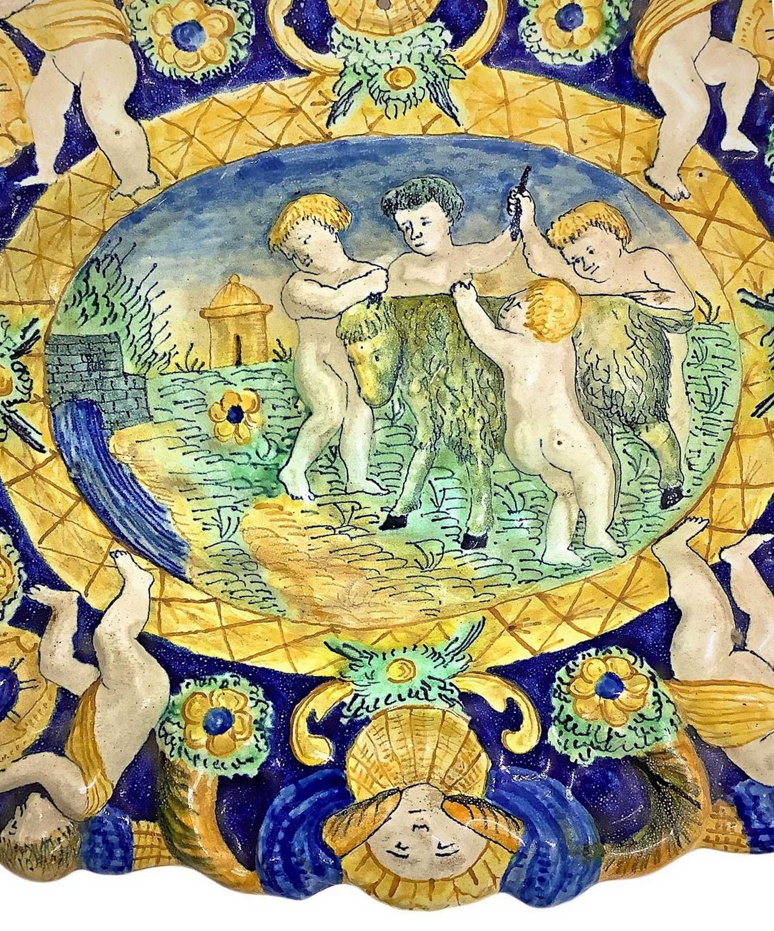 Piatto in maiolica con puttini, nineteen° secolo 25x29,5 cm Provenienza centro ItaliaProvenienza centro Italia