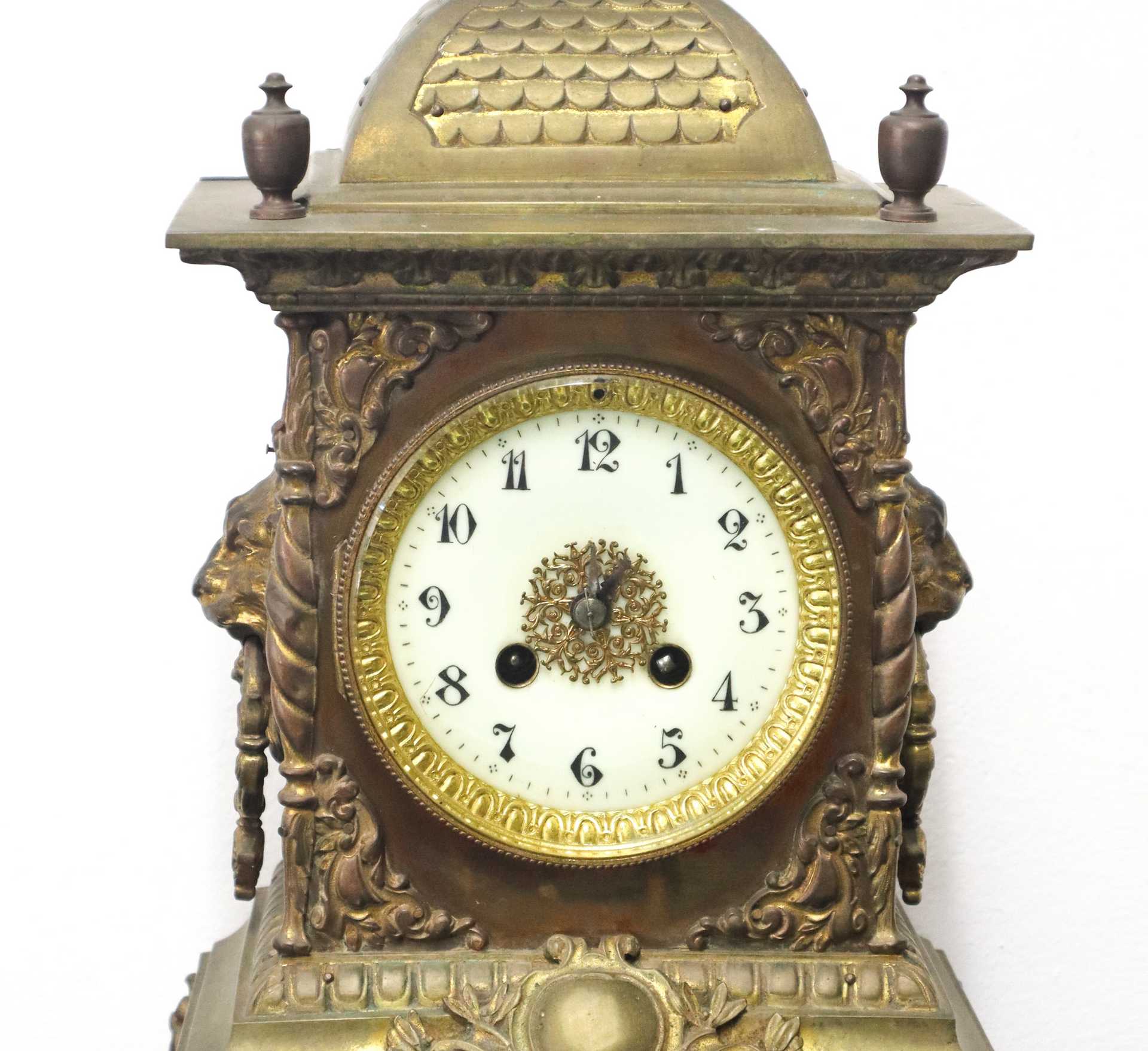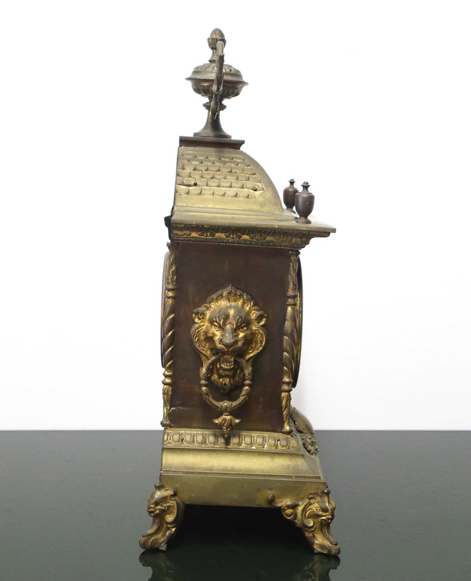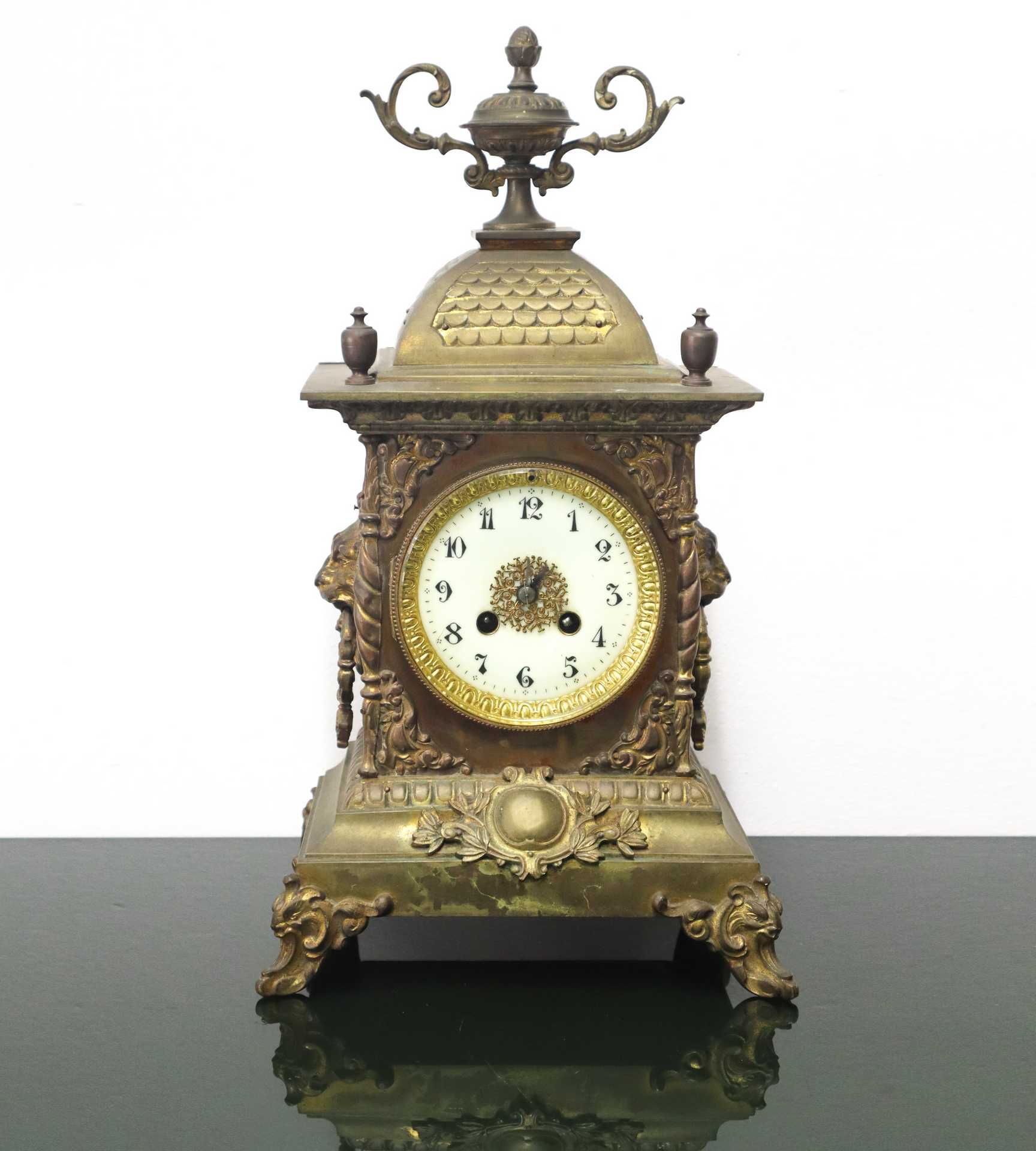 Orologio da tavolo a pendolo. In metallo dorato con quadrante in porcellana , Fine 19° secolo
