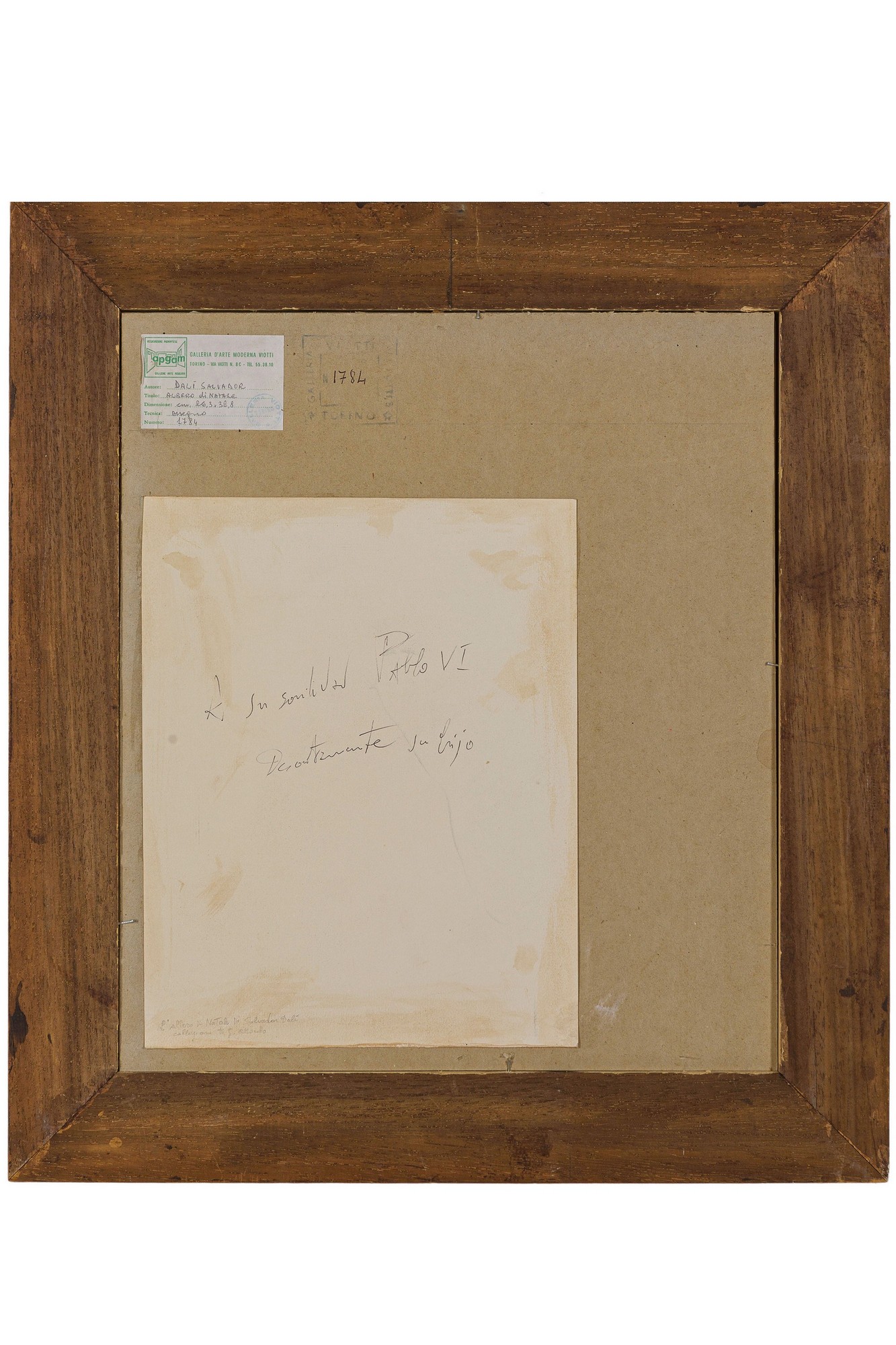 Firmato e datato in alto a destra; dedicato sul retro a Papa Paolo VI