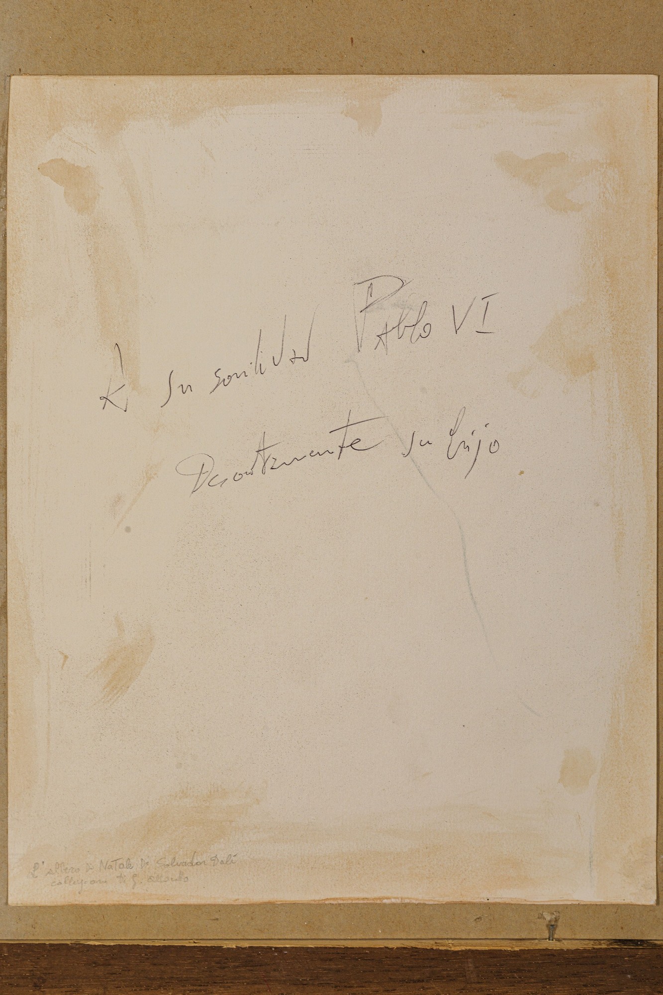 Il disegno fu realizzato come cartolina di Natale per il Papa Paolo VI nel 1963, anno della sua elezione al soglio pontificio. La dedica sul retro recita infatti 'A sua Santità Paolo VI, devotamente suo figlio'