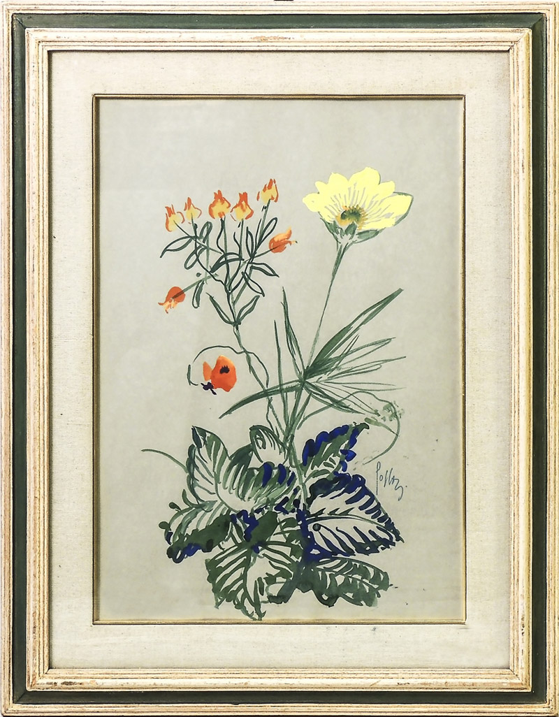 SILVIO POLLONI (1888-1972) Fiori - Flowers tempera su cartoncino - tempera on cardboard, firmato, in cornice cm 49x34