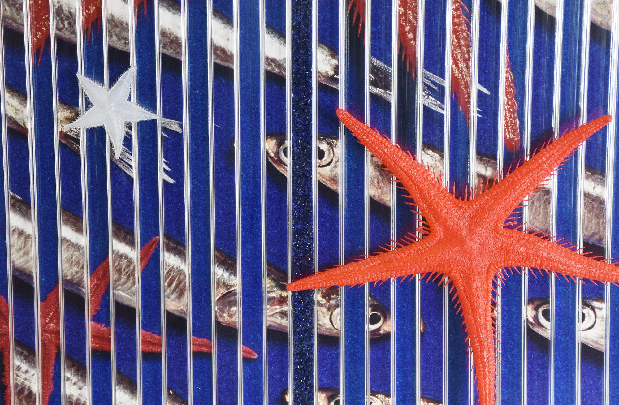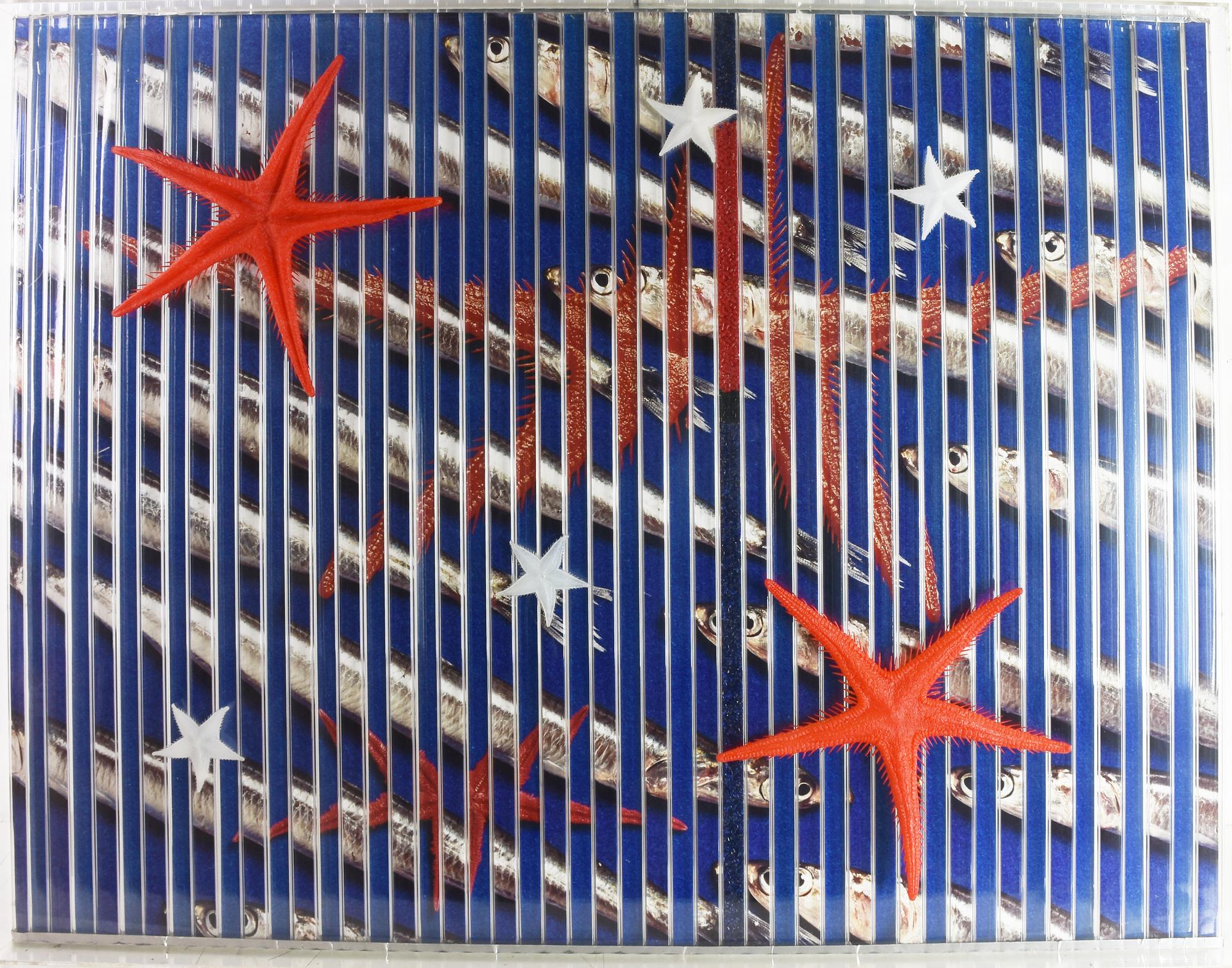 tecnica mista (foto, policarbonato e plastiche) entro teca in plexiglass, cm 75x97,5