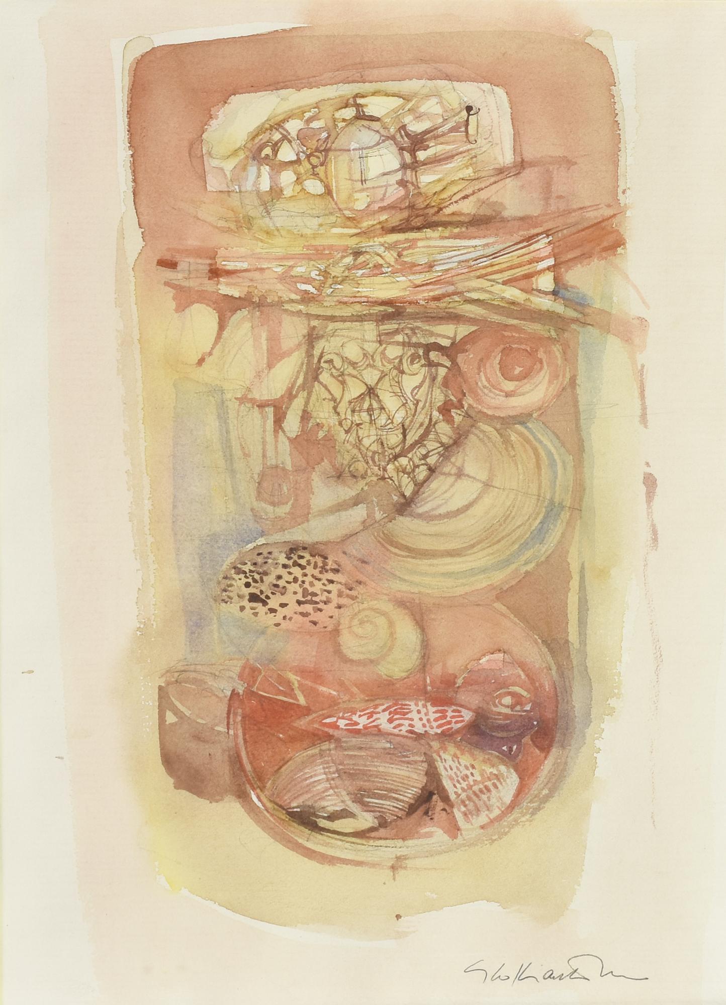 Giacomo Soffiantino INTERNO CON NATURA MORTA tecnica mista su carta, cm 40x30...