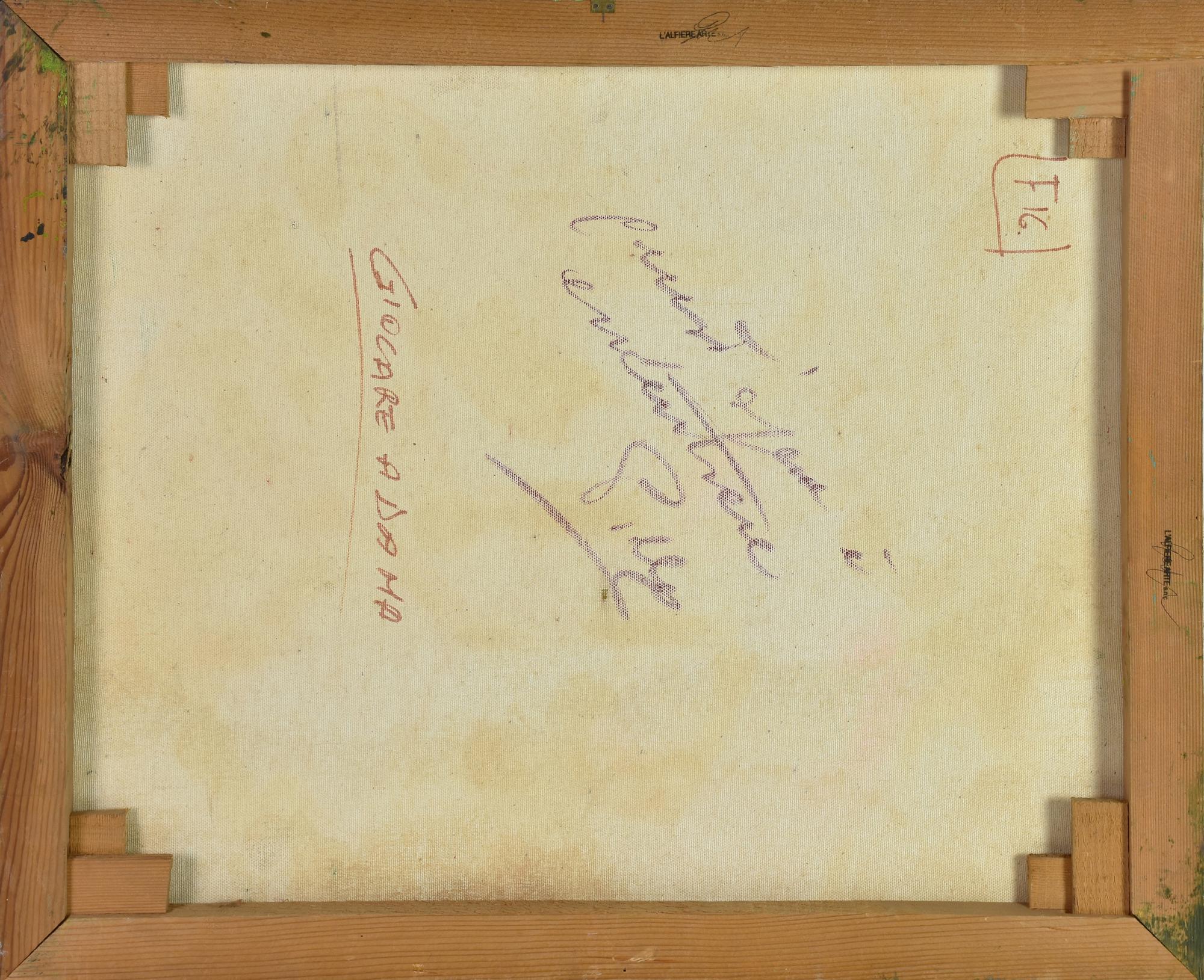 Pasquale Pilla GIOCARE A DAMA olio su tela, cm 50x60 firma sul retro: firma,...