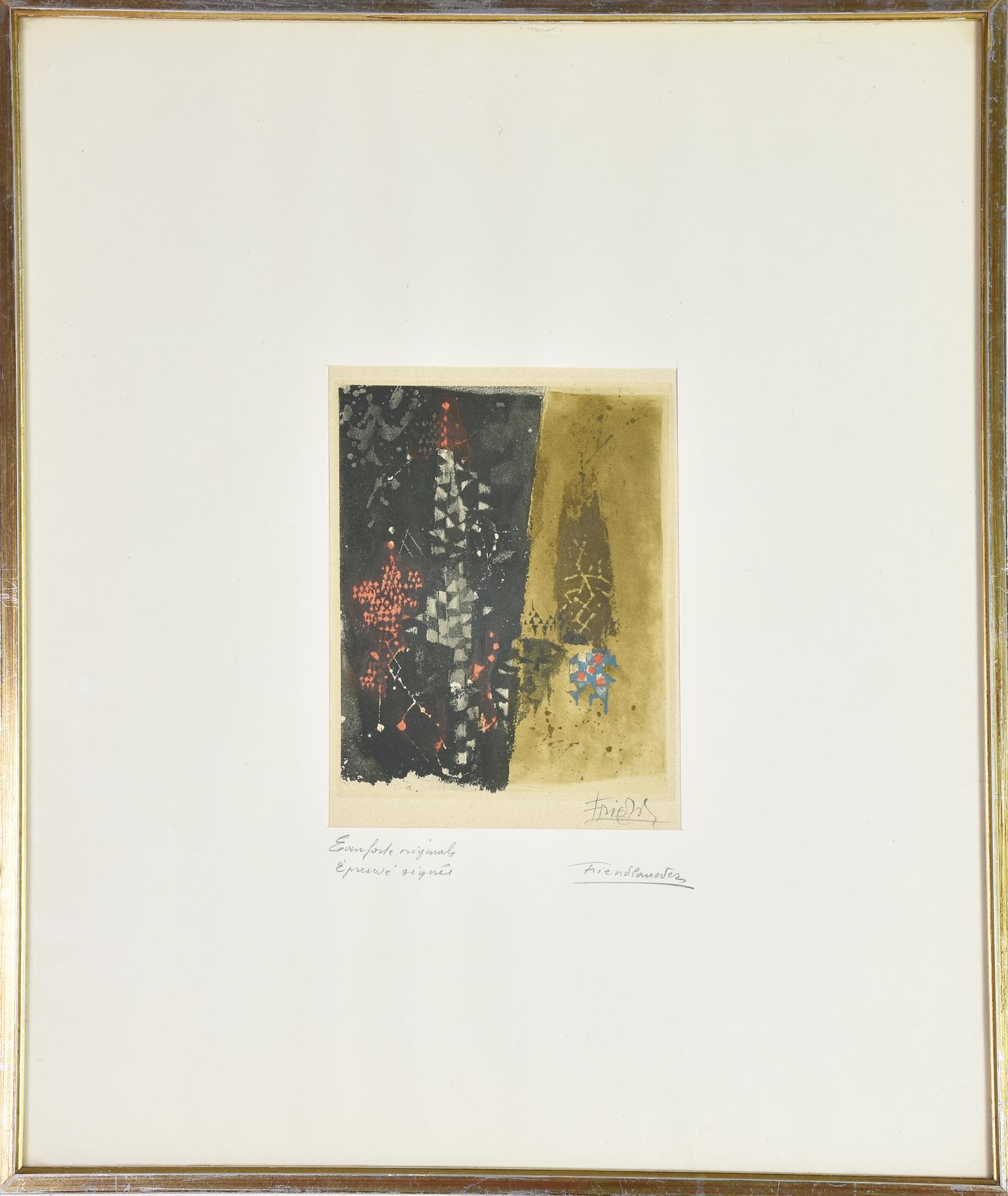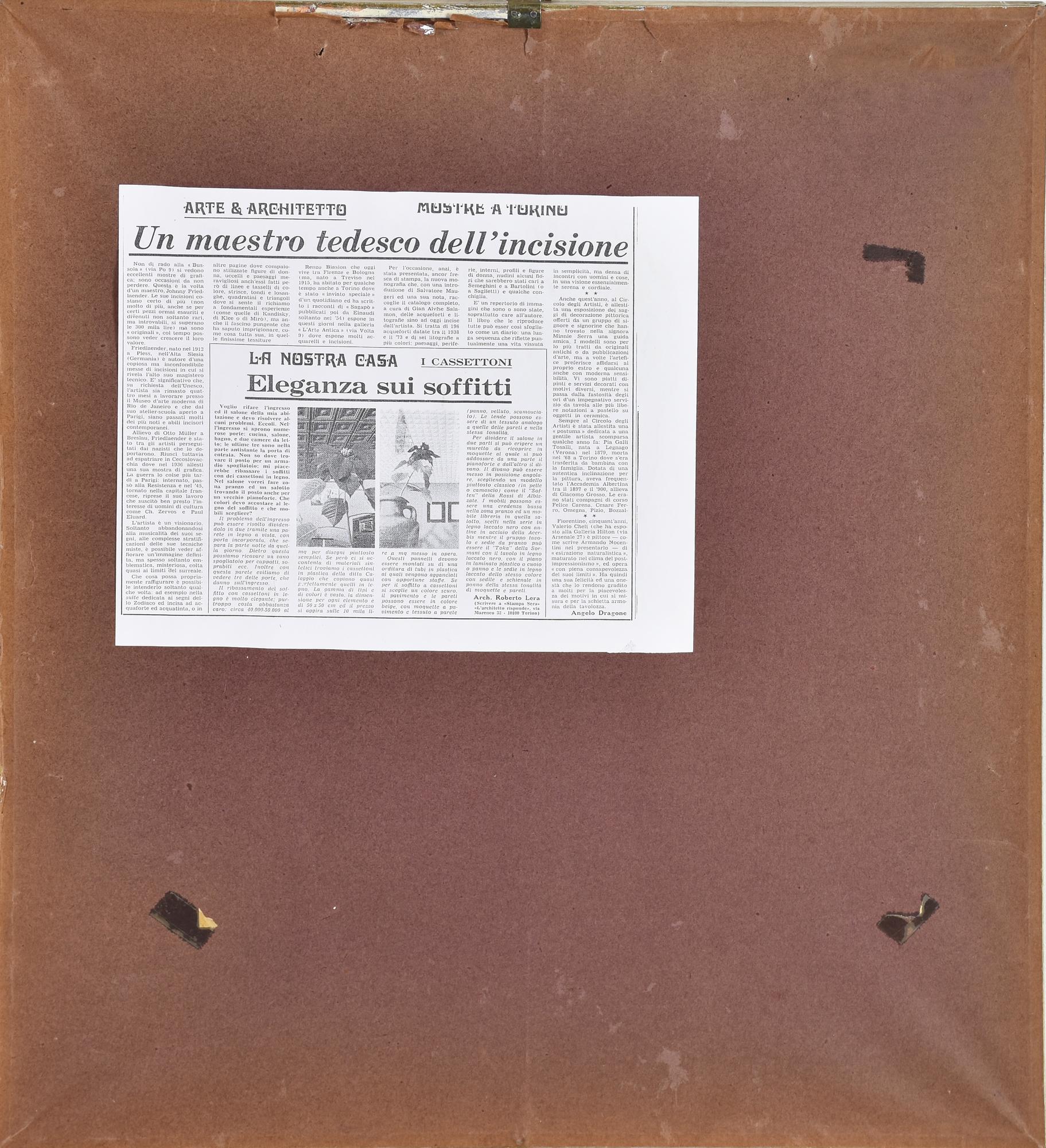 incisione originale firmata a mano con scritta da decifrare, immagine cm 15,5x12,5 circa, dimensioni totali cm 32,5x25,5