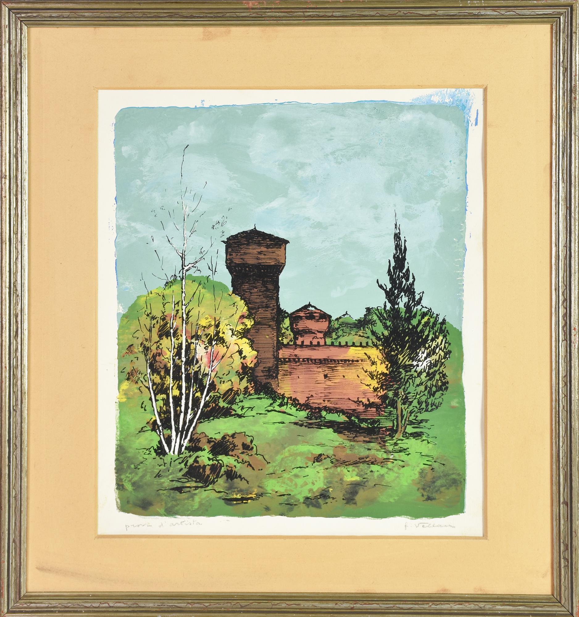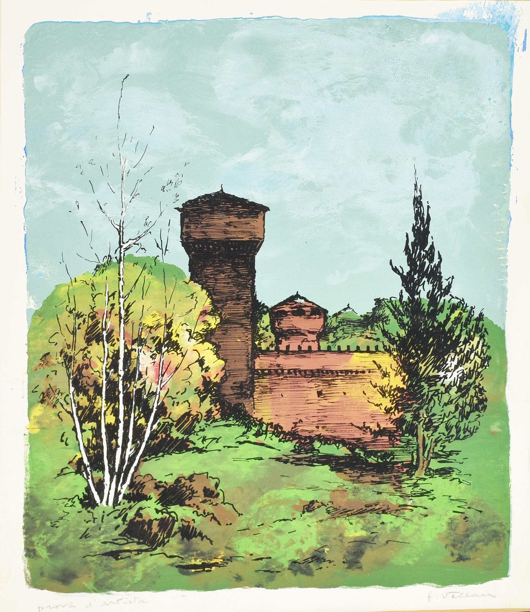 Felice Vellan CASTELLO DEL VALENTINO serigrafia polimaterica su carta, cm...