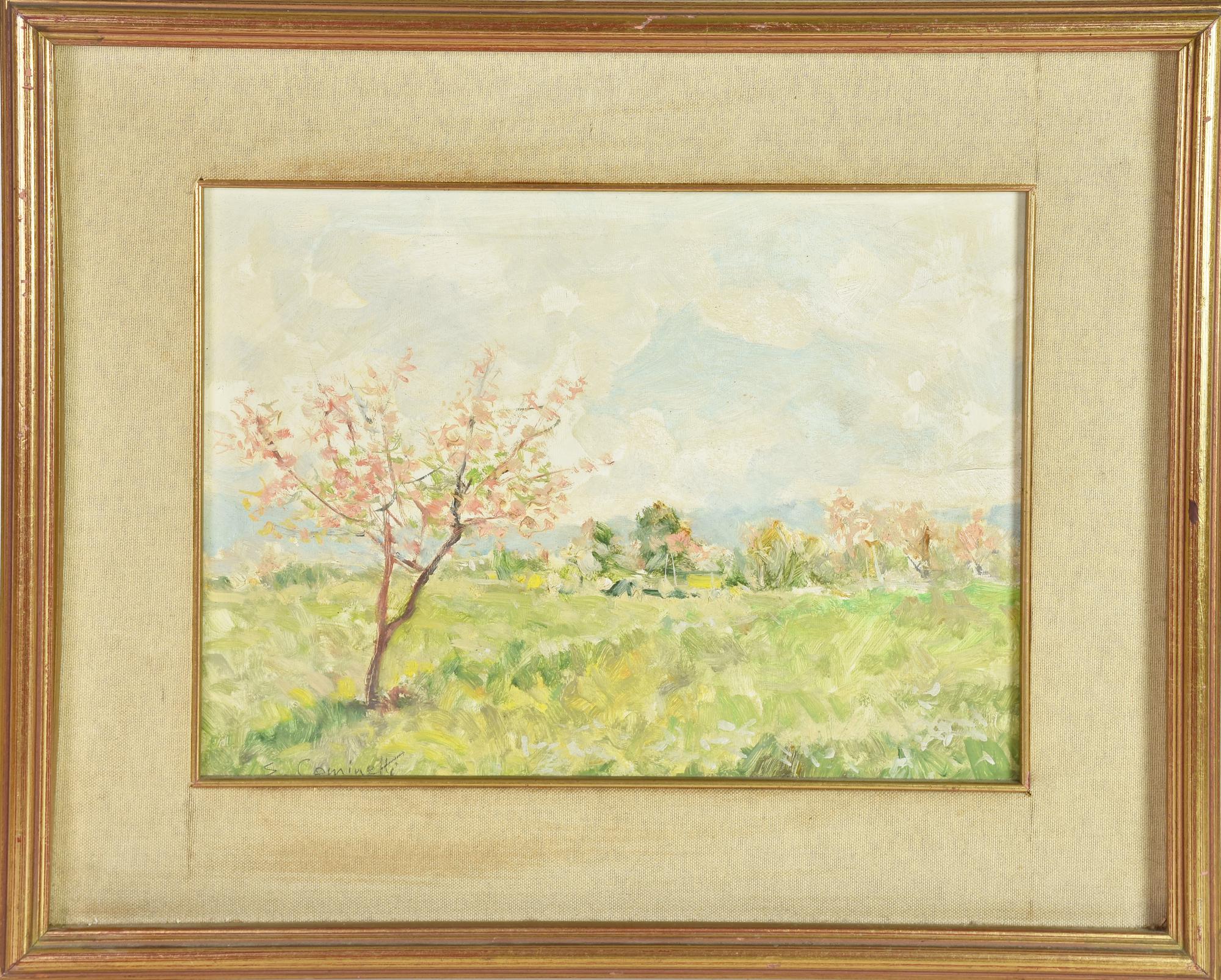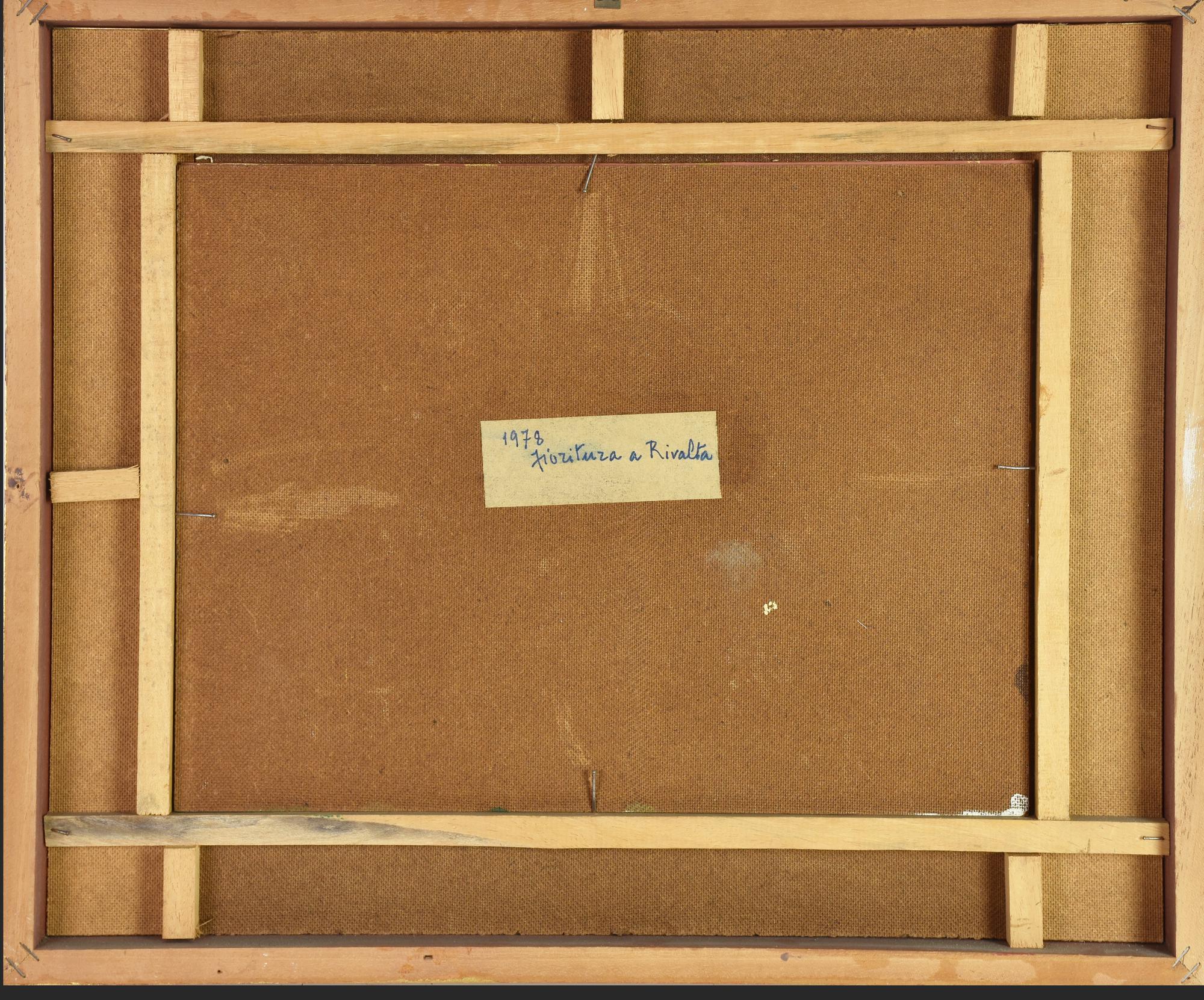 Sergio Cominetti FIORITURA A RIVALTA, 1978 olio su masonite, cm 30x40 firma...