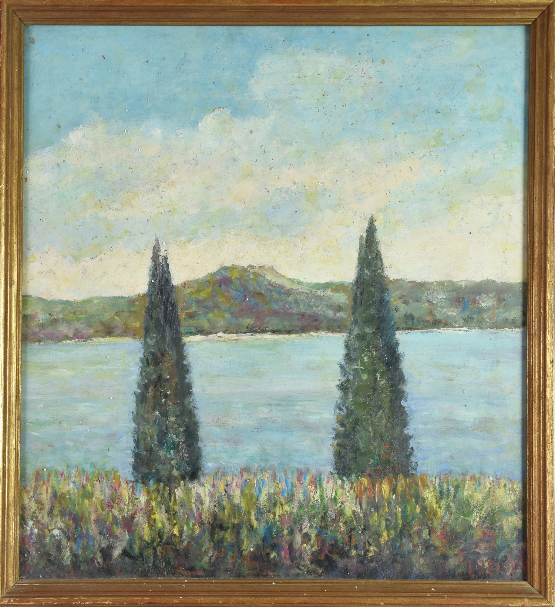 Ed. Gardon LAGO DI GARDA, 1980 olio su masonite, cm 55x50 firma sul retro:...