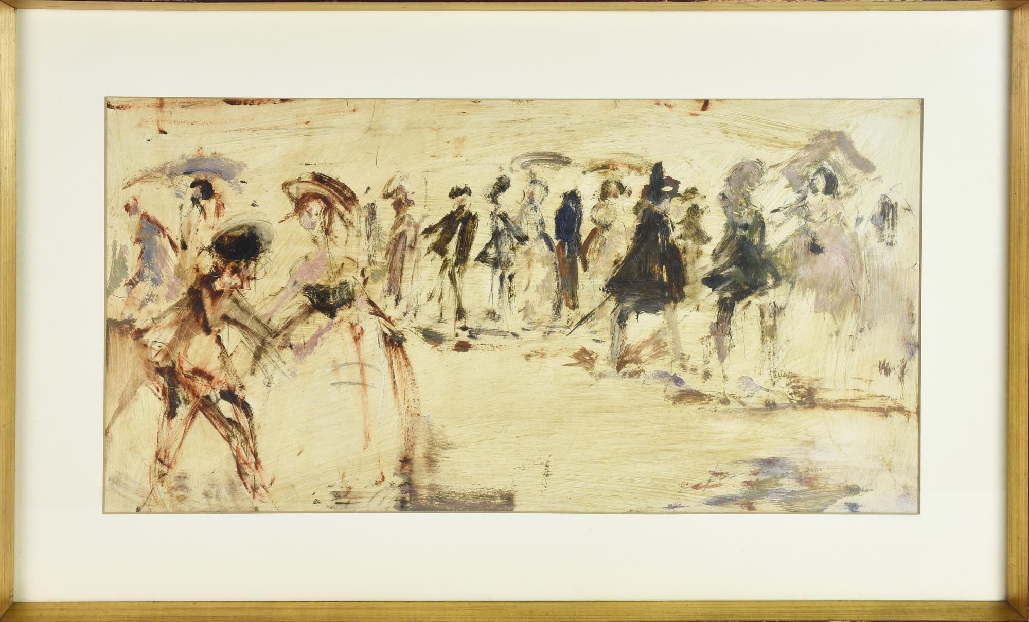 Piero Garino PASSEGGIATA AI GIARDINI olio magro su cartoncino, cm 35x69...