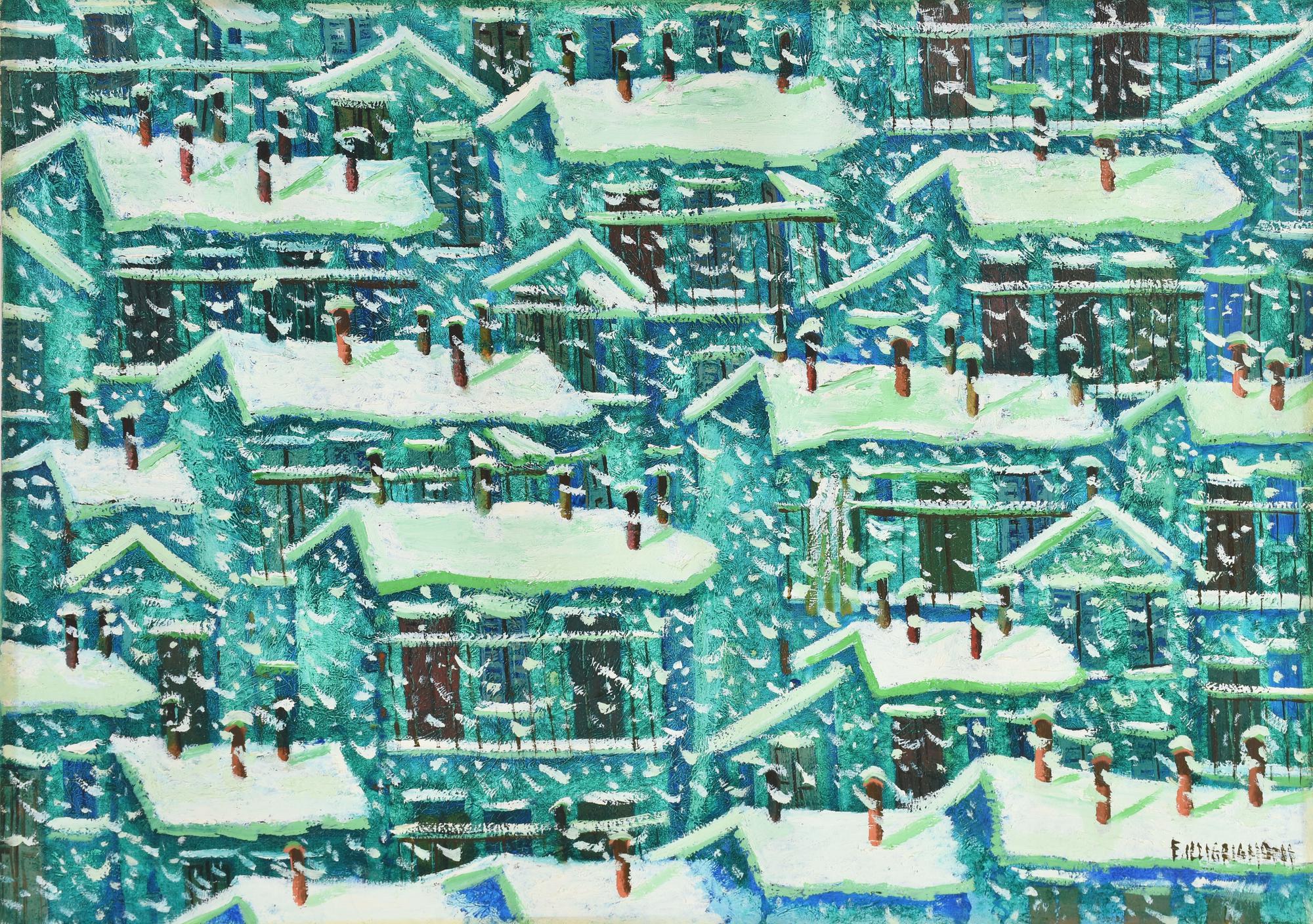 Elia Garignani L'ULTIMA NEVE olio su tela, cm 60x80 firma sul retro: firma e...