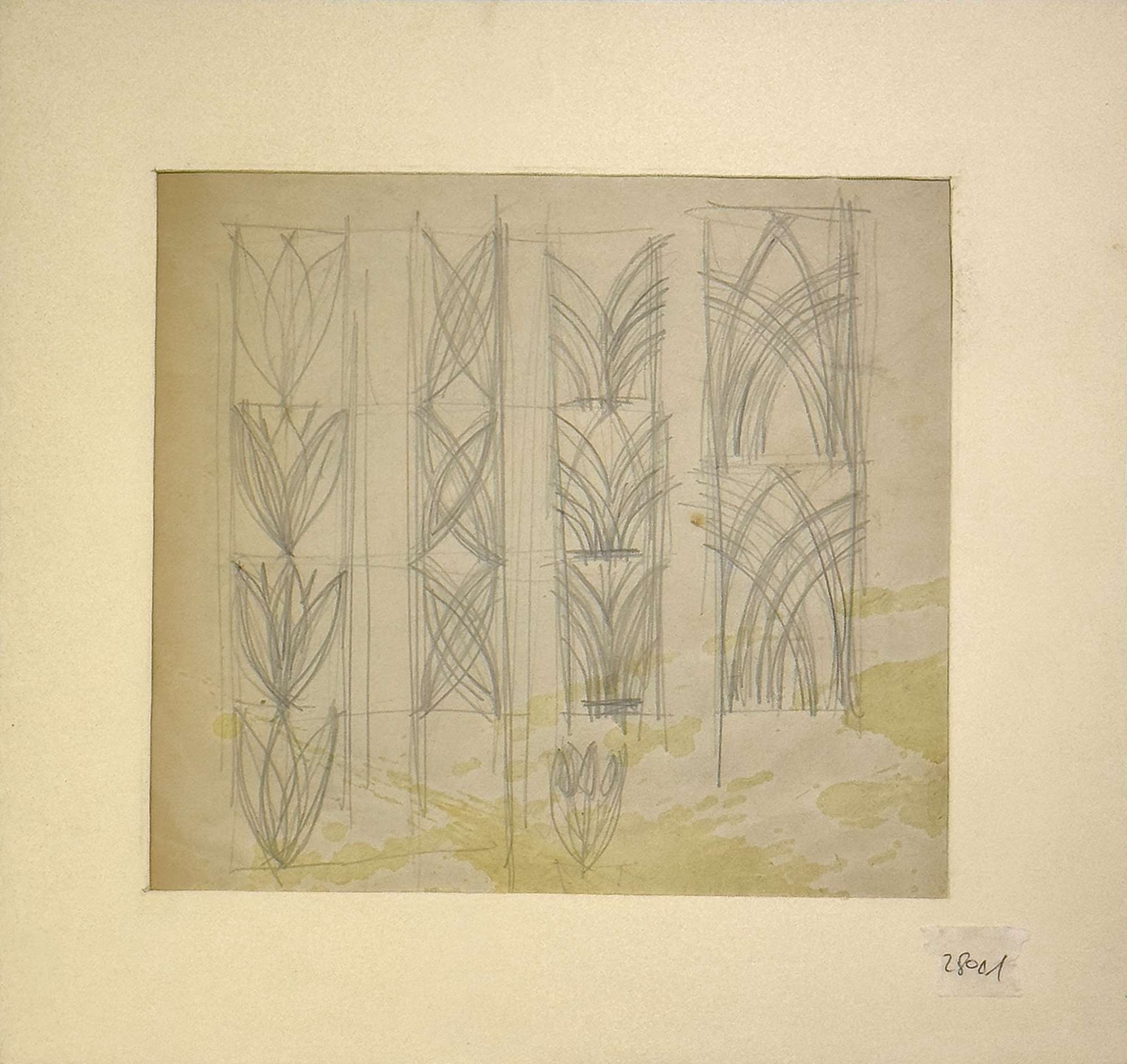 Fortunato Depero, Studio per fasce decorative, 1953/54, matita su carta, 30x28 cm, Studio per fasce decorative delle porte della sala del consiglio provinciale del comune di Trento, la cornice presenta lievi difetti