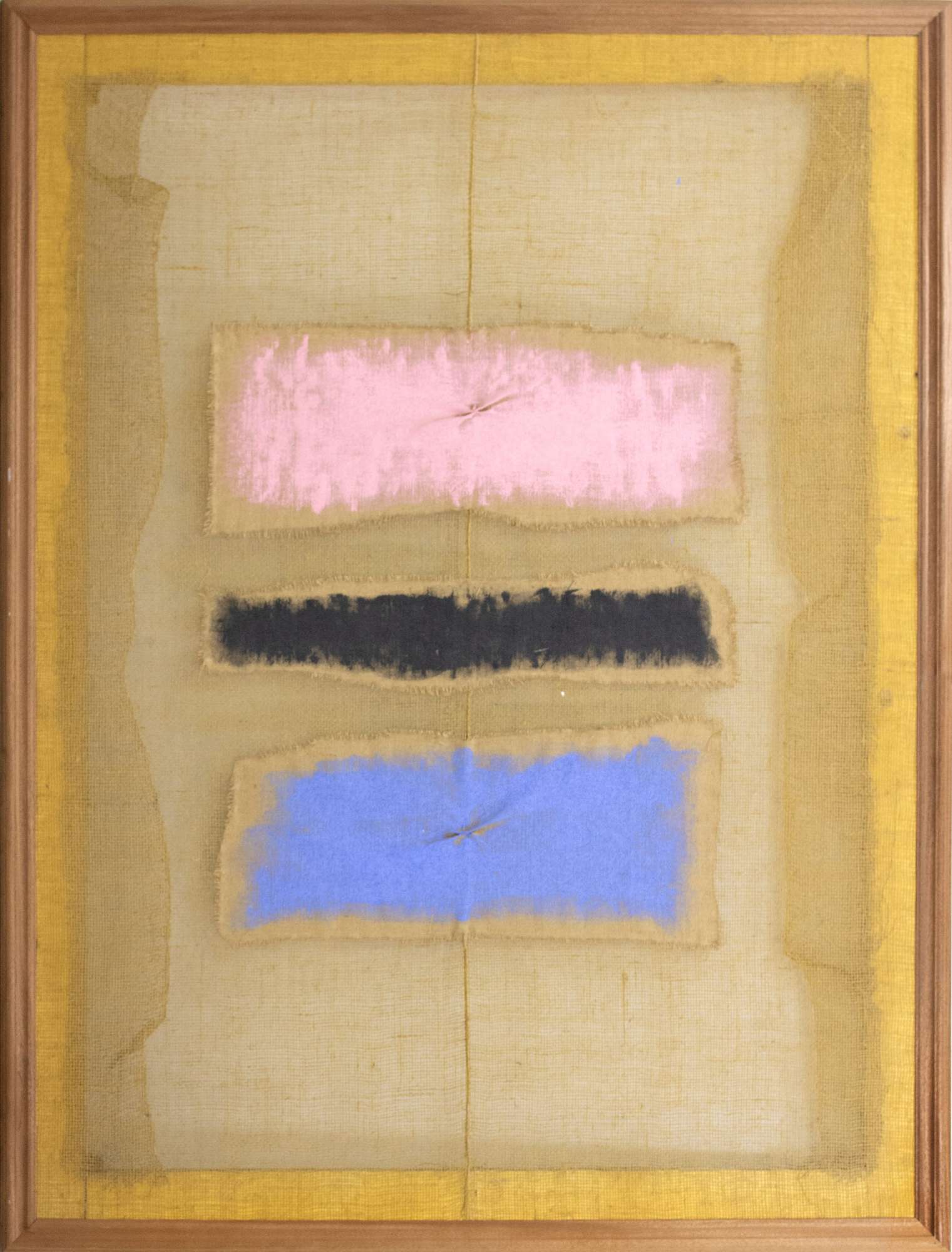 Salvatore Emblema, Senza titolo, 2005, terra colorata su tela di juta, 200x150 cm, opera autenticata e archiviata presso l'archivio Emblema a cura di Auricchio Raffaella in Emblema, opera soggetta a diritto di seguito