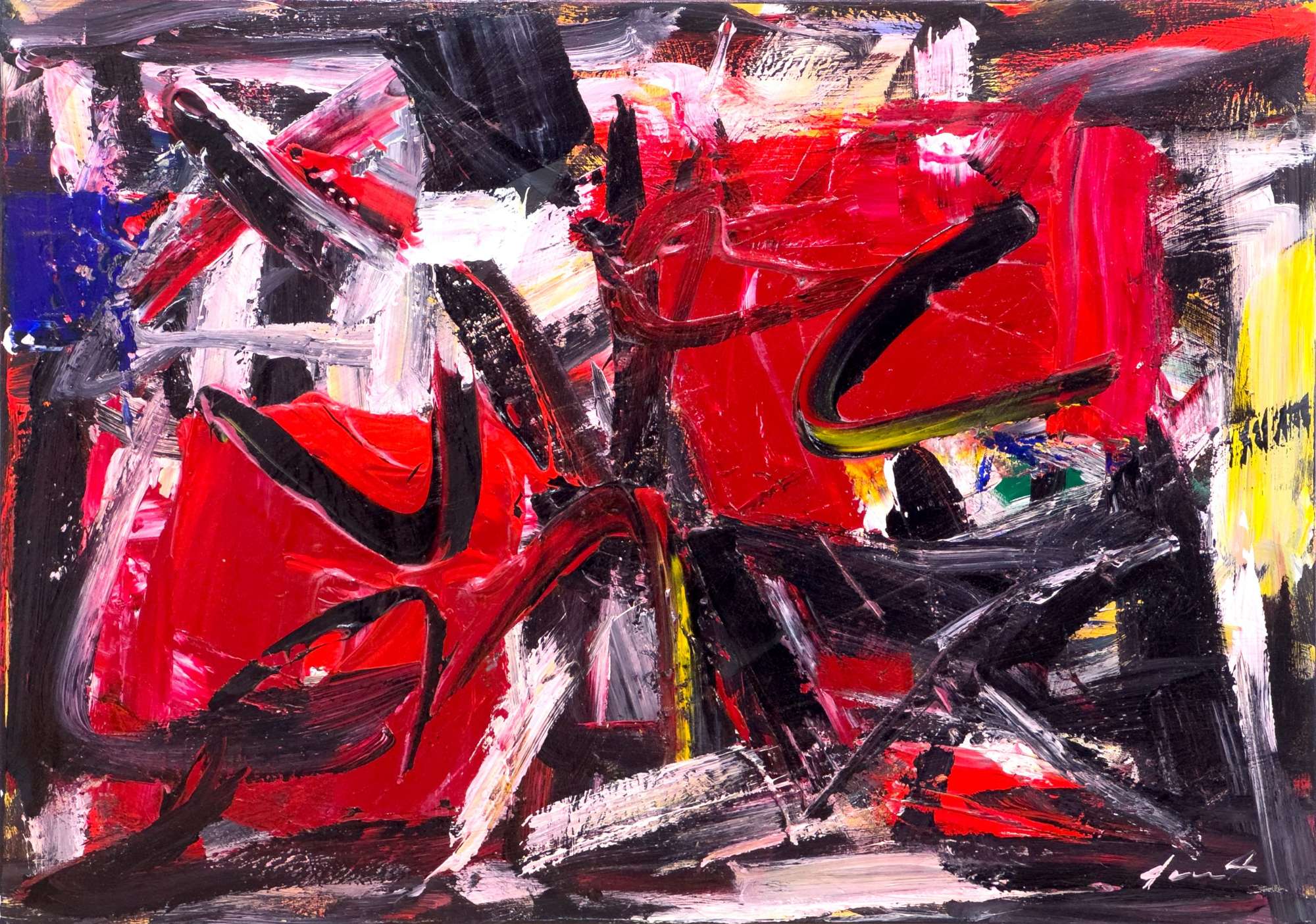 Pierluigi De Lutti, Di rosso, anni Duemila, olio su tela, 70x100 cm, autentica a cura dell'artista