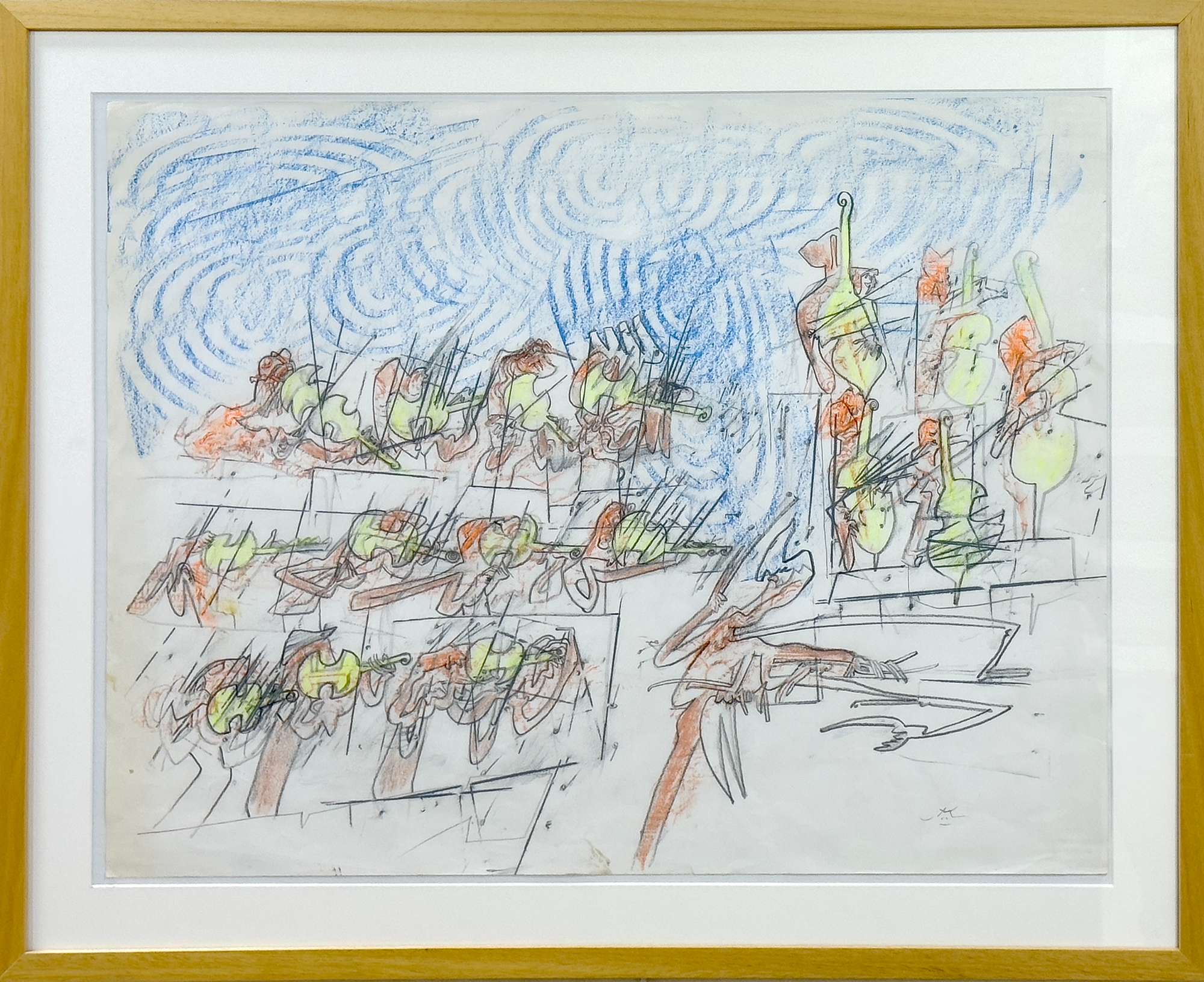 Sebastian Roberto Matta, Senza titolo, anni Ottanta, pastelli colorati e matita su carta, 50x64,5 cm, pezzo unico, firmato, corredato da autentica degli eredi Matta, pubblicato in 'Calvino cantafavole', pag. 85; catalogo della mostra per il centenario di Italo Calvino tenutasi a Palazzo Ducale, Genova dal 15 ottobre 2023 al 7 aprile 2024, opera soggetta a diritto di seguito
