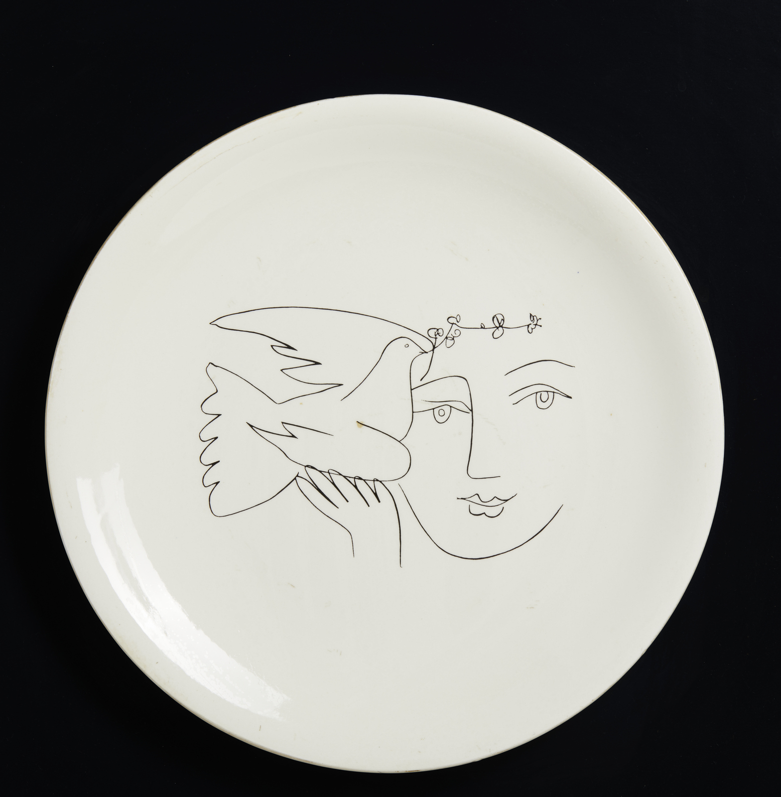 PICASSO PABLO (1881 - 1973) (D'APRES) LE VISAGE DE LA PAIX.. Piatto in ceramica. Cm 24,00 x 24,00. sul retro: firma a stampa