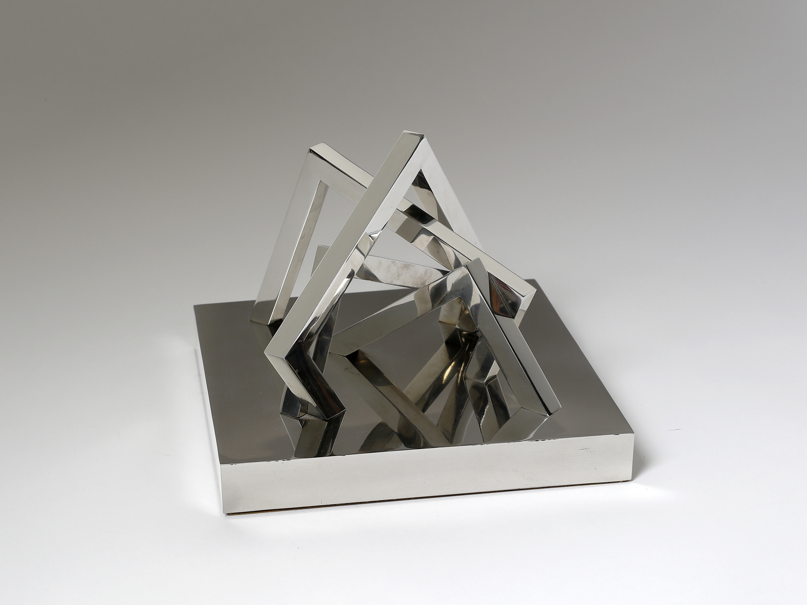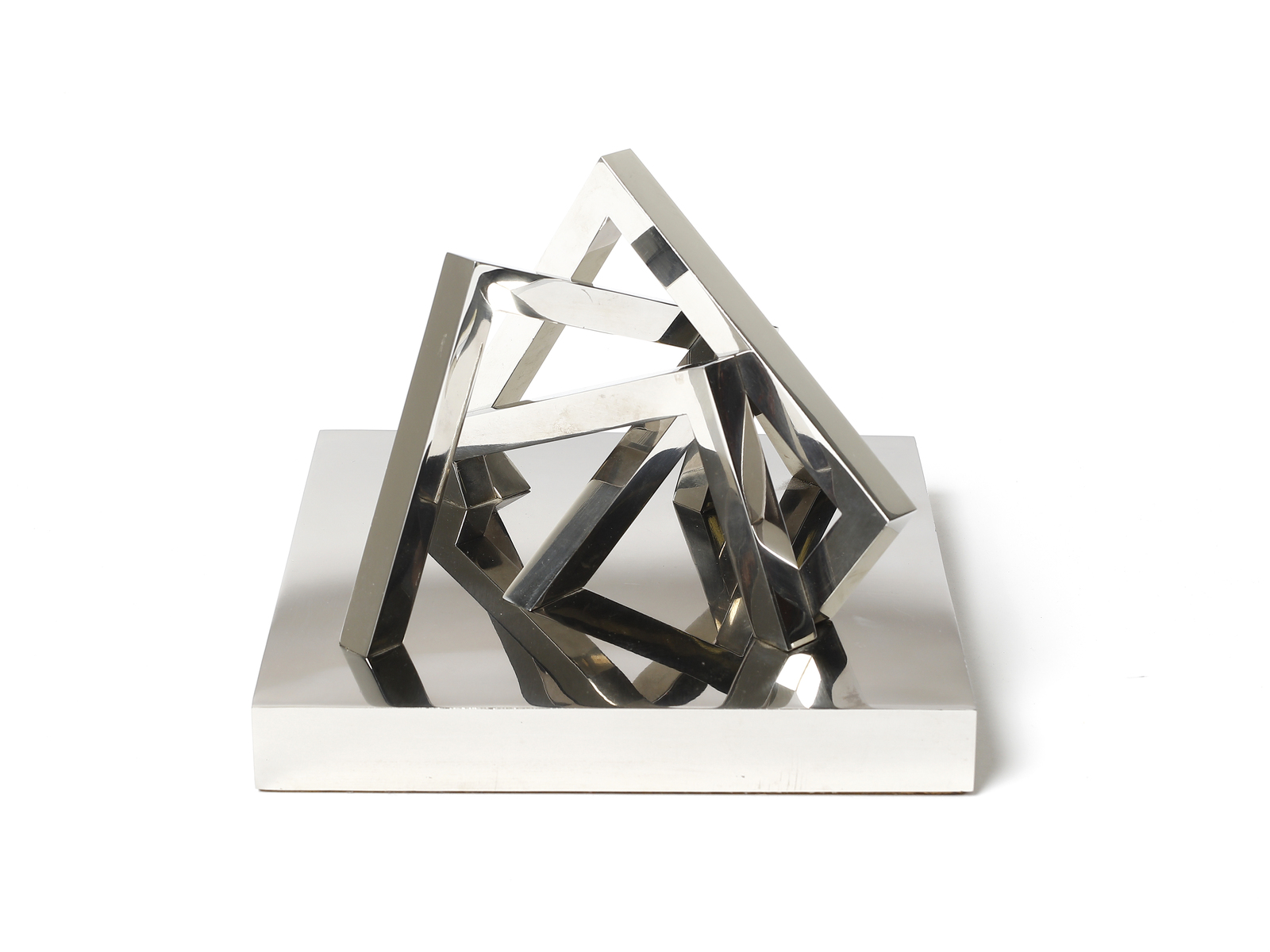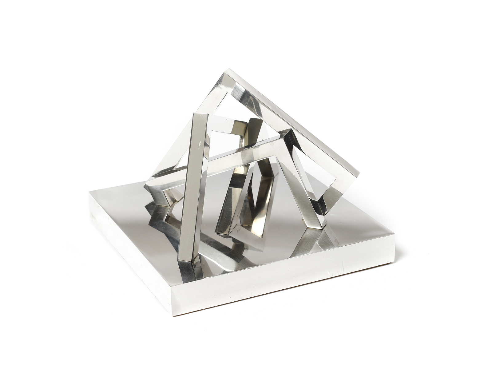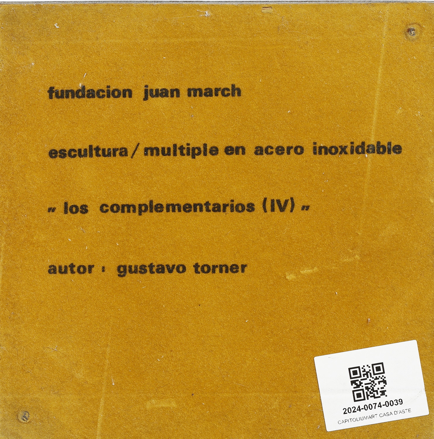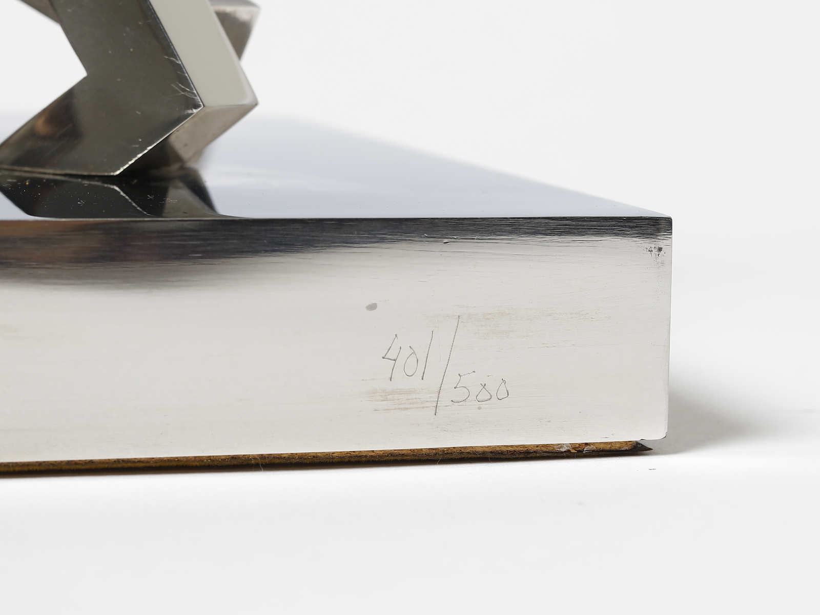 TORNER GUSTAVO (n. 1925) LOS COMPLEMENTARIOS IV, 1985. Multiplo. Cm 23,00 x 17,50 x 23,00. scultura in acciaio.