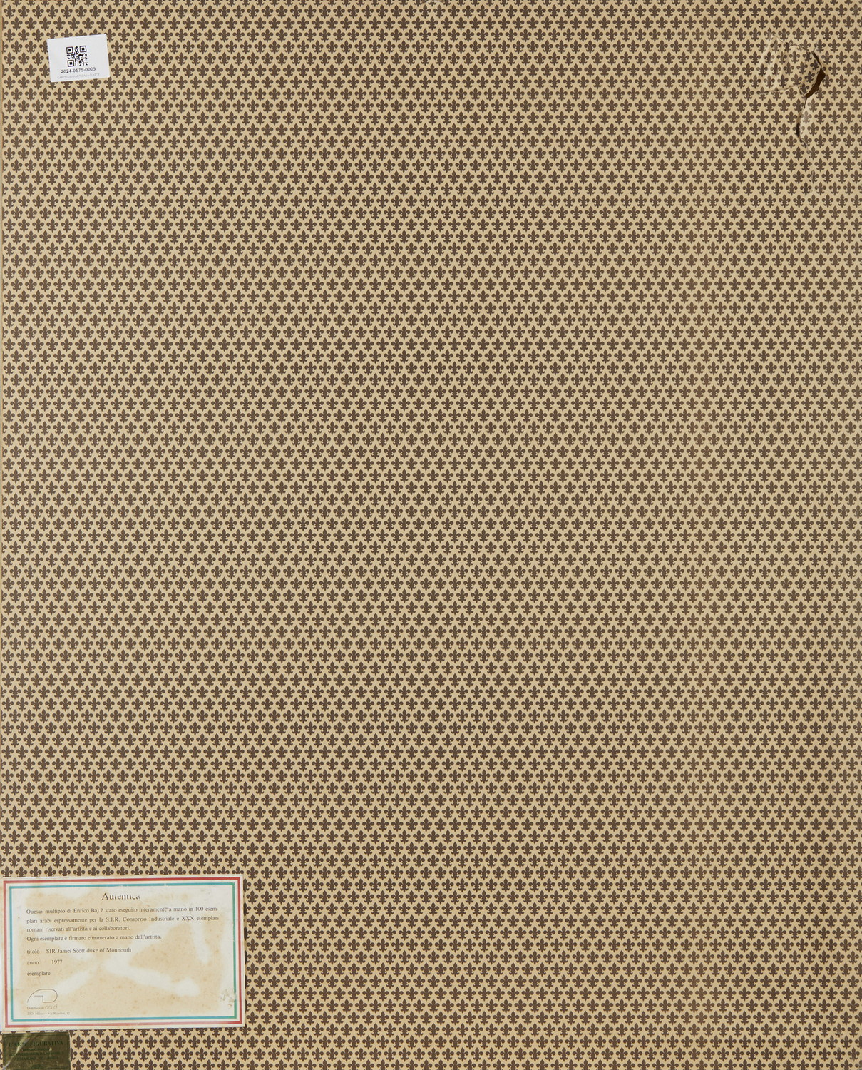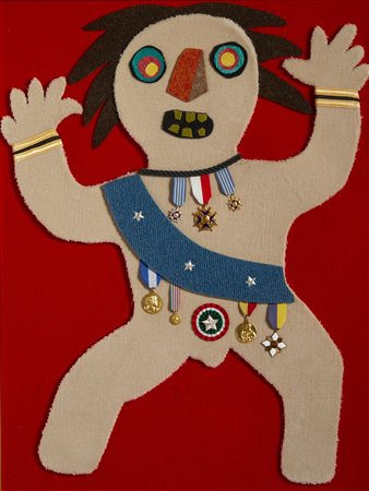 BAJ ENRICO (1924 - 2003) SIR JAMES SCOTT DUCA DI MONMOUTH, 1977. multiplo in feltro e collage. Cm 83,00 x 103,00. esemplare n.71