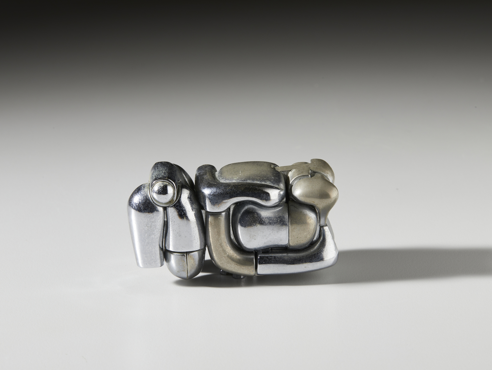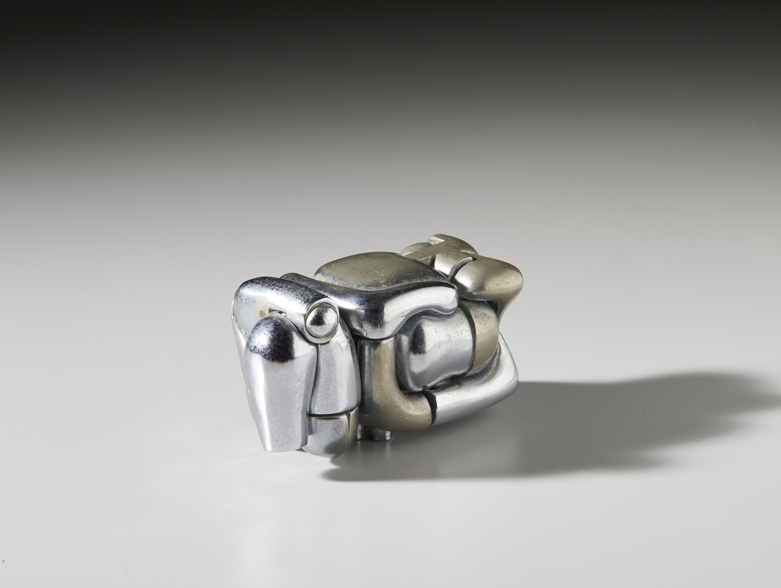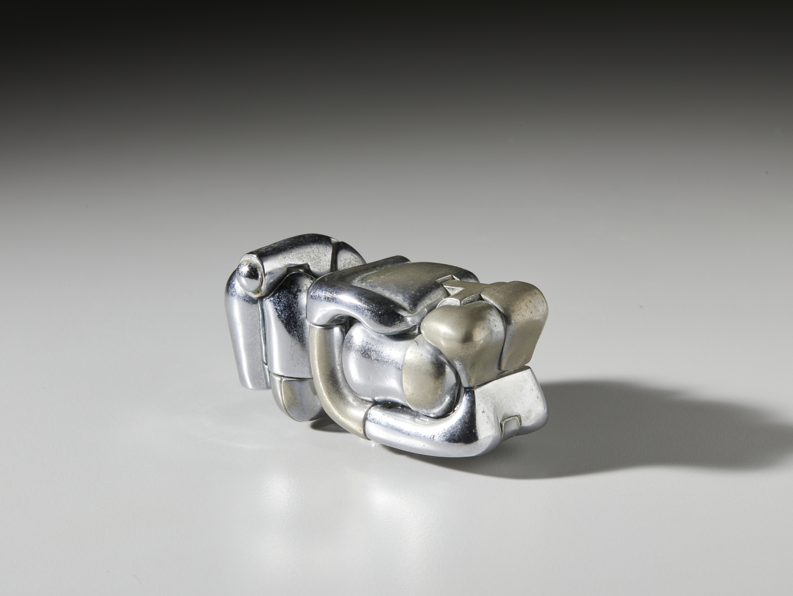 BERROCAL MIGUEL ORTIZ (1933 - 2006) LA MINI MARIA (SERIE MICRO- MULTIPLES), 1968-1969. Metallo nichelato.. Cm 4,00 x 7,50 x 3,50. firma e tiratura incise alla base, n.1973