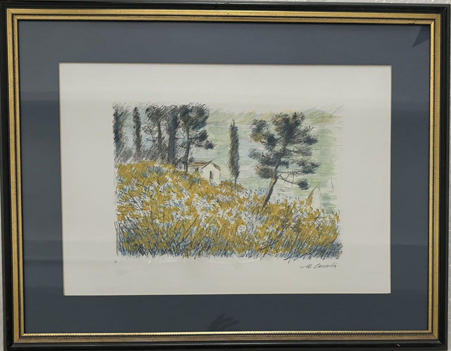 Casa nel bosco Litografia su carta cm. 86 x 65 con cornice prova d'autore firmata in basso a dx