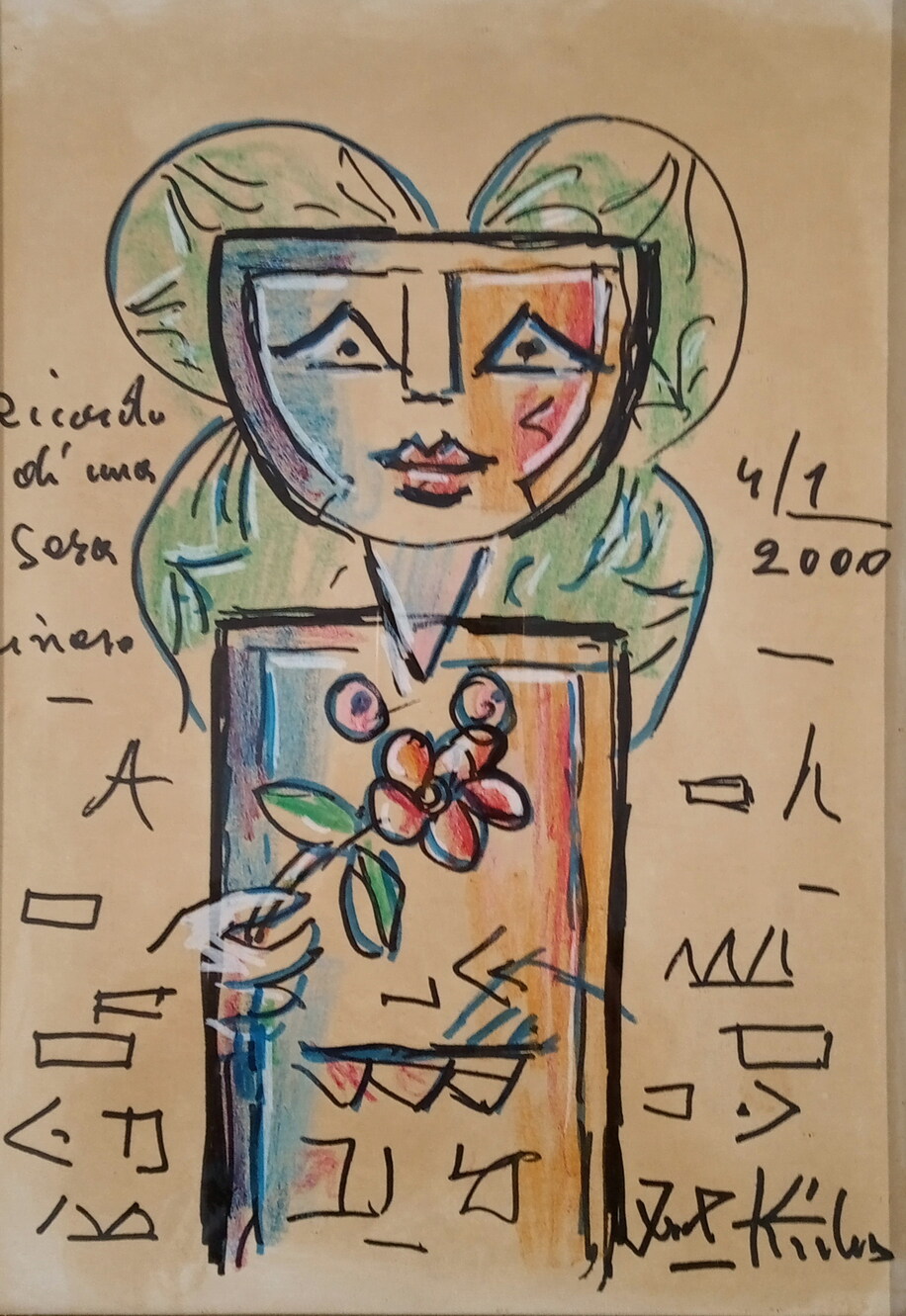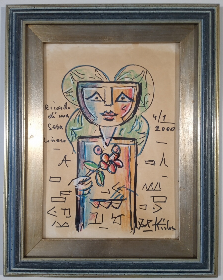 KODRA IBRAHIM Ishëm (Albania) 1918 Ricordi di una sera Mista su cartoncino...