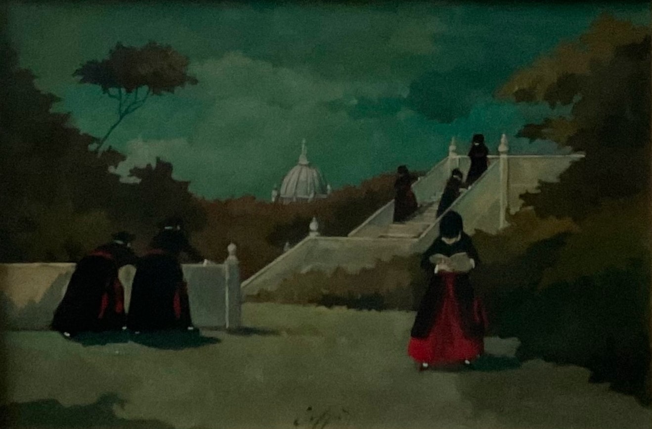 CAFFE' NINO Alfadena (AQ) 1908 Pretini Olio su compensato 25,00x35,00 Firmato...