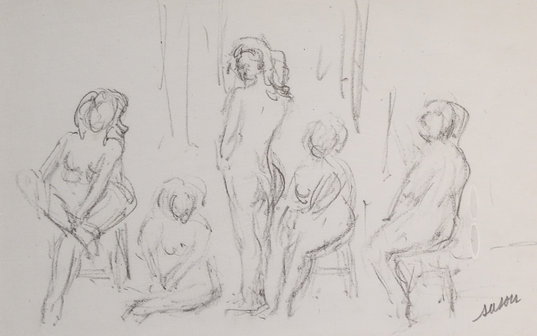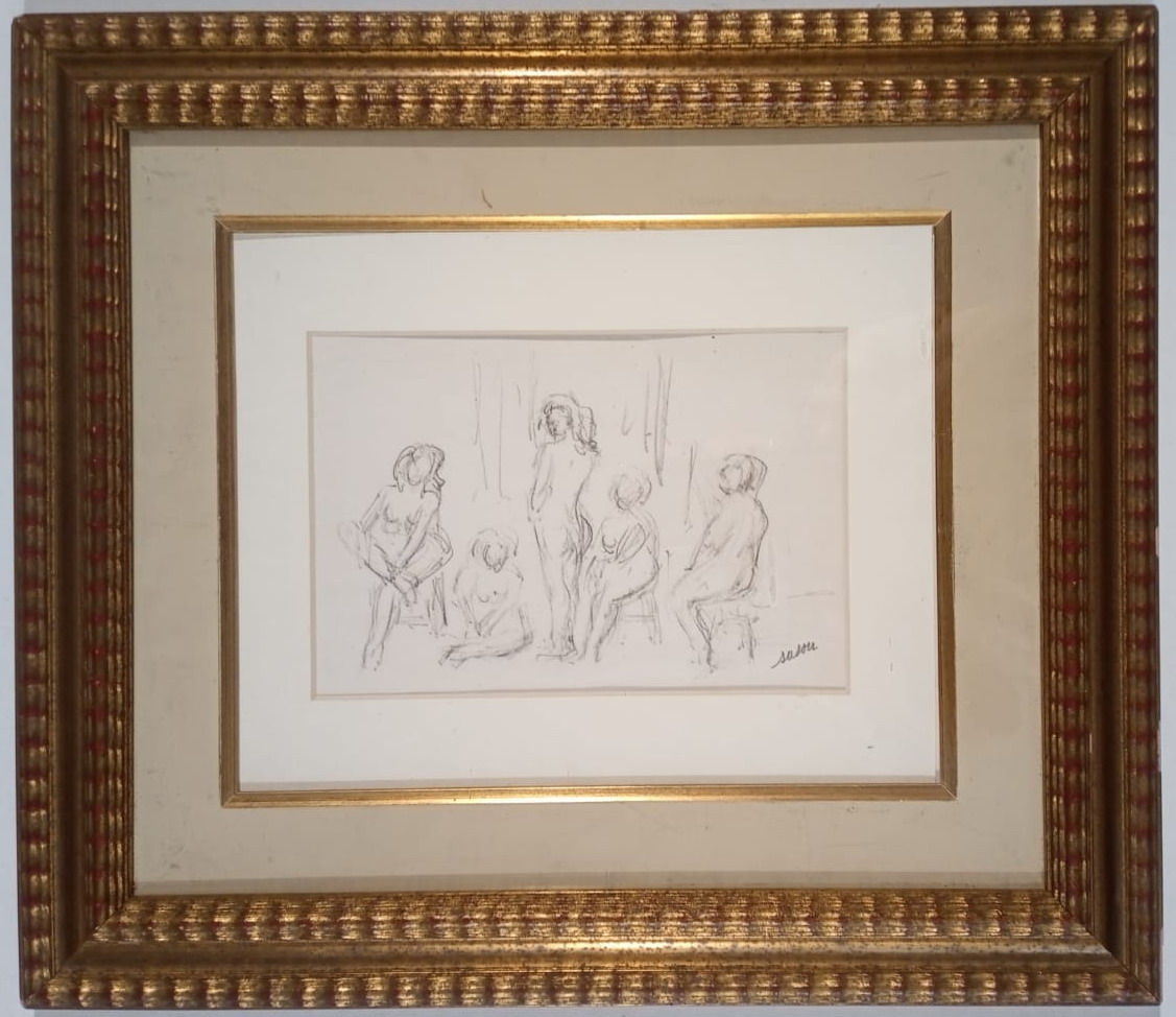SASSU ALIGI Milano (MI) 1912 Figure Disegno su carta 16,00x23,00 Firmato in...