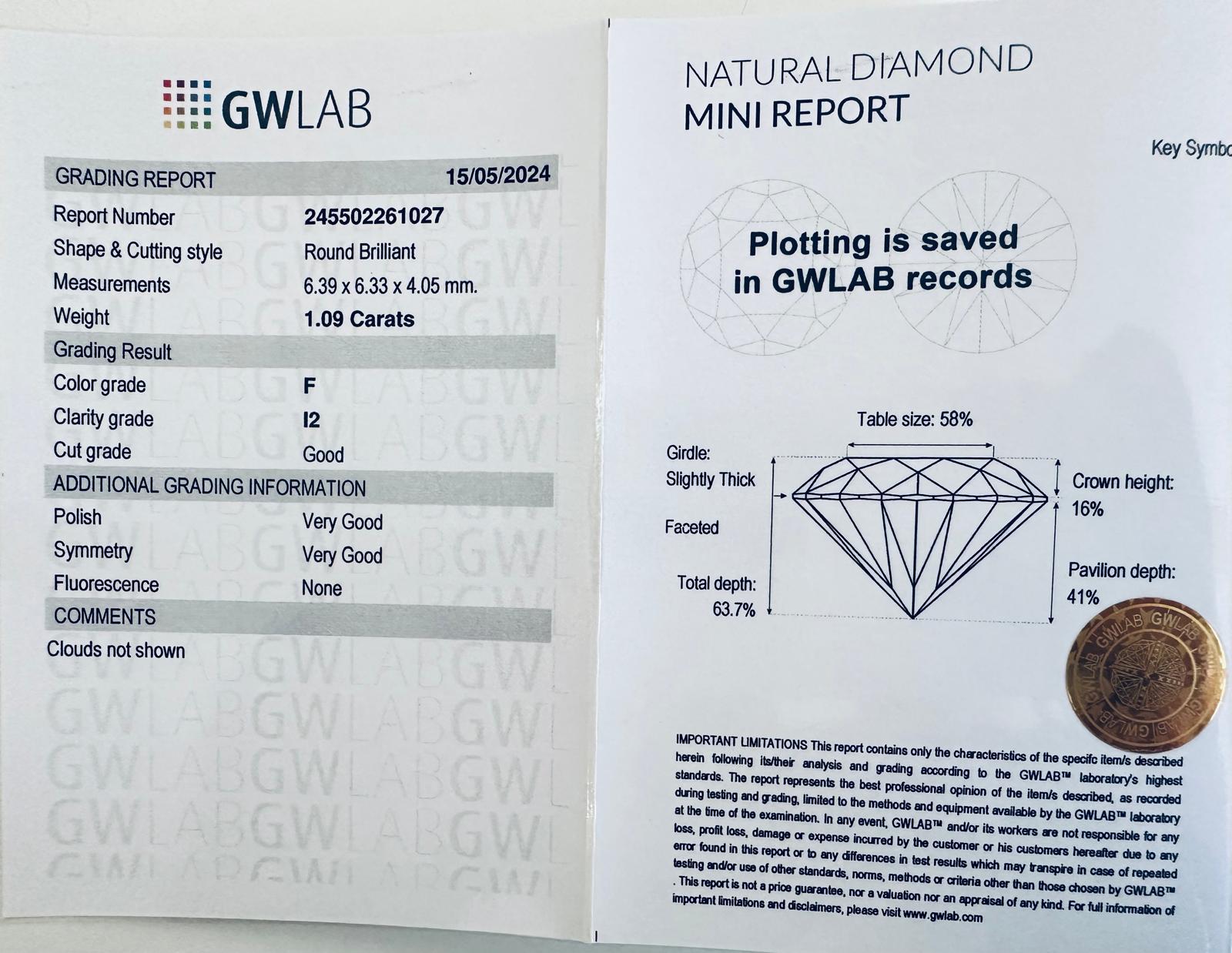DIAMANTE 1,09 CT J - PUREZZA I2 - TAGLIO BRILLANTE - CERTIFICATO GEMMOLOGICO MAROZ DIAMONDS LTD MEMBRO ISRAEL DIAMOND EXCHANGE - C31219-27
