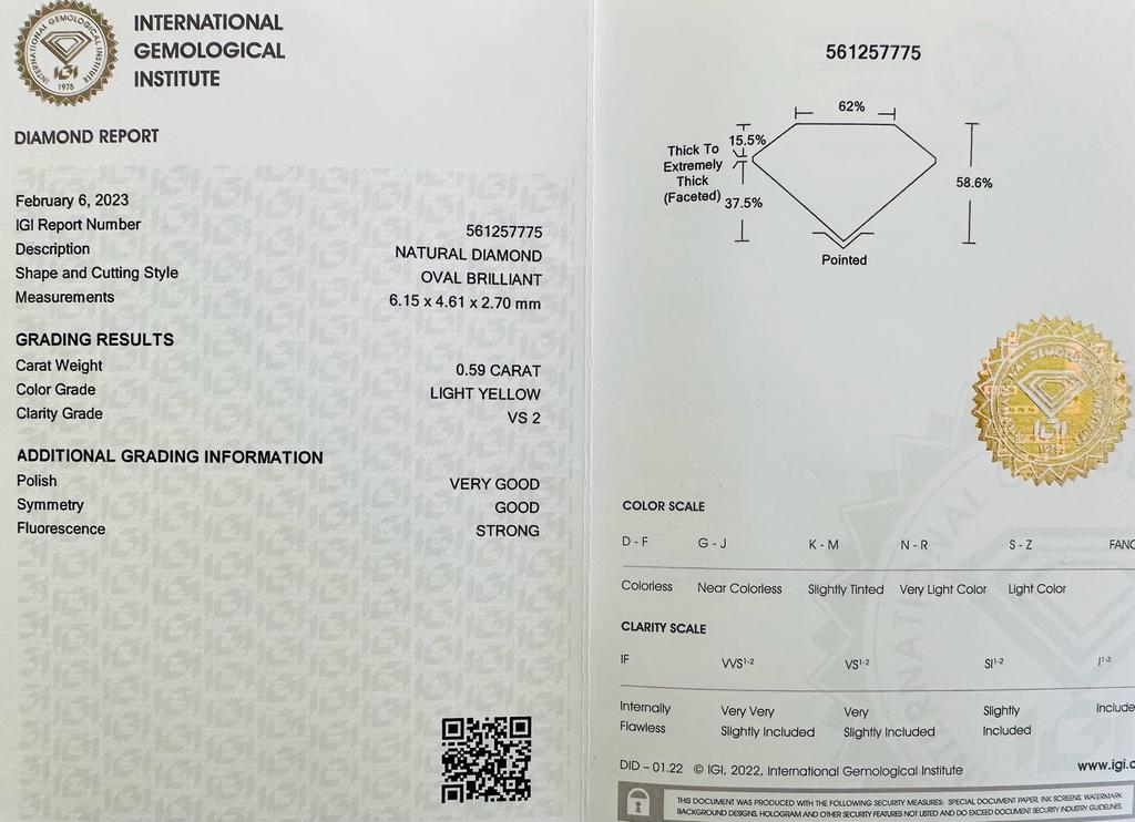 DIAMANTE NATURAL POLISHED 0,59 CT GIALLO CHIARO - VS2 - TAGLIO OVALE - IGI - UD30120-1
