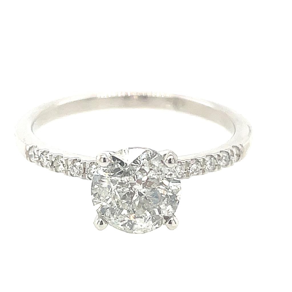 ANELLO IN ORO BIANCO 14K 2.47 GR CON DIAMANTE DA 1.51 CARATI COLORE G - PUREZZA I1 + BRILLANTI PER 0.12 CARATI COLORE F PUREZZA VS TAGLIA: 7.5 - RNG21203