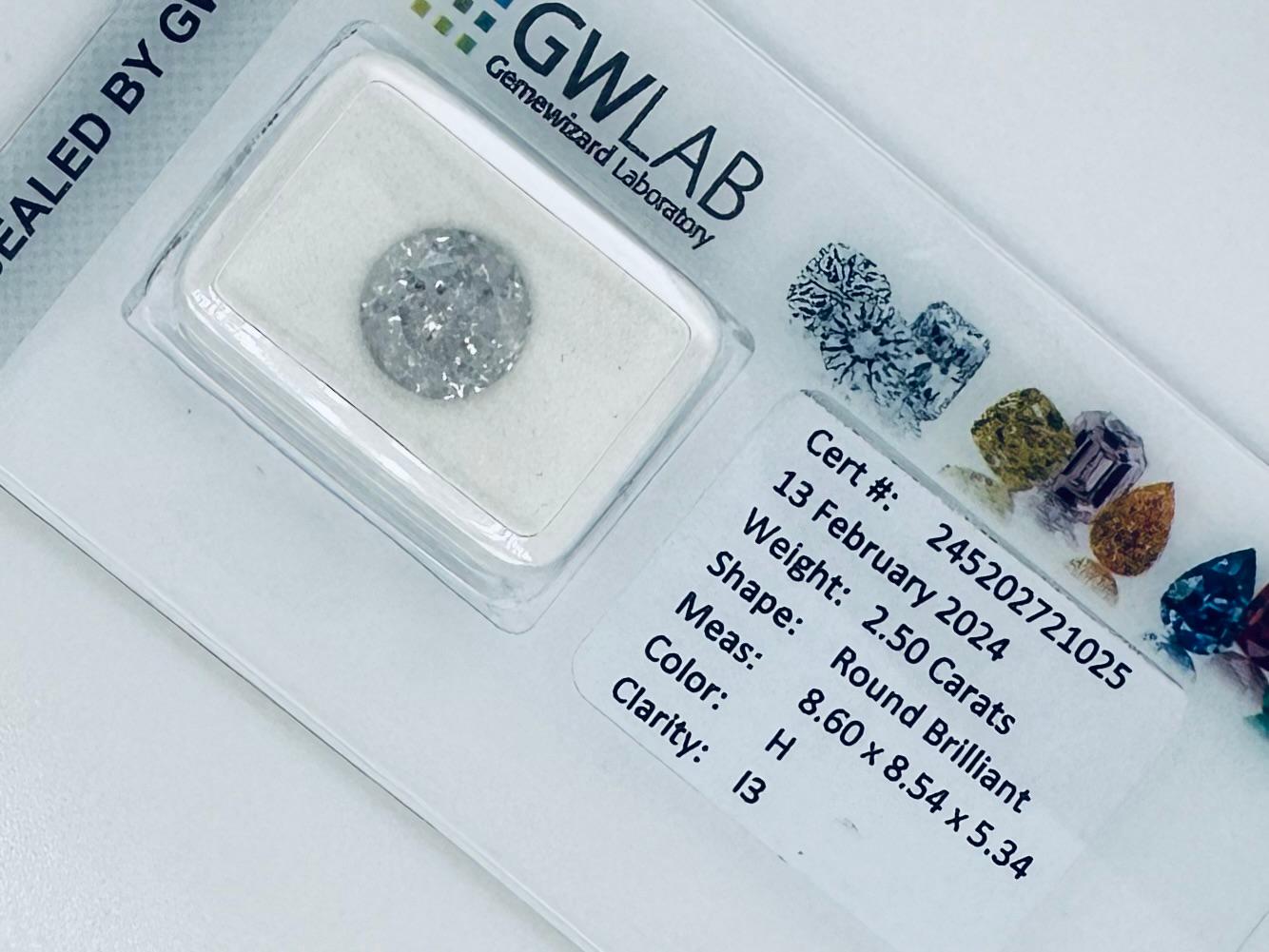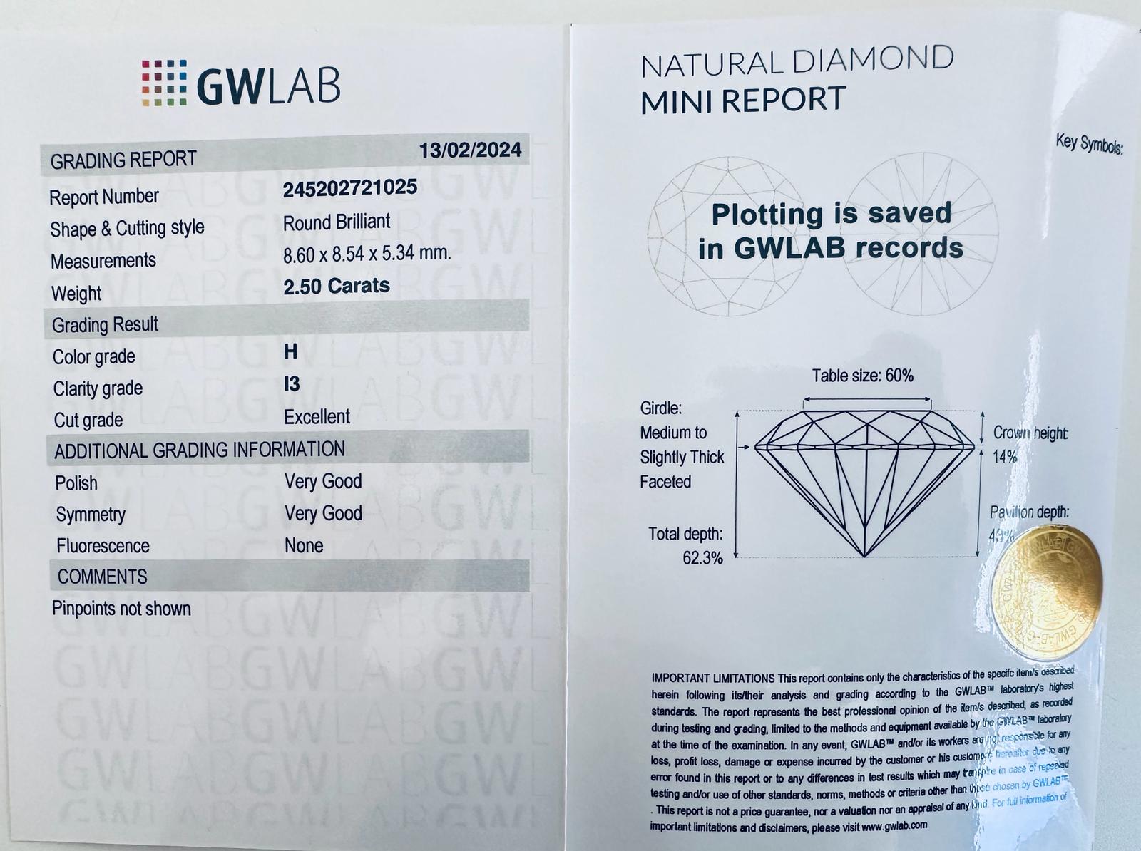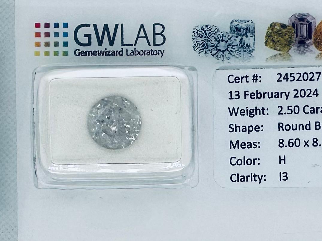 DIAMANTE 2,5 CARATI COLORE H - PUREZZA I3 - TAGLIO BRILLANTE - CERTIFICATO GW - C40206-12