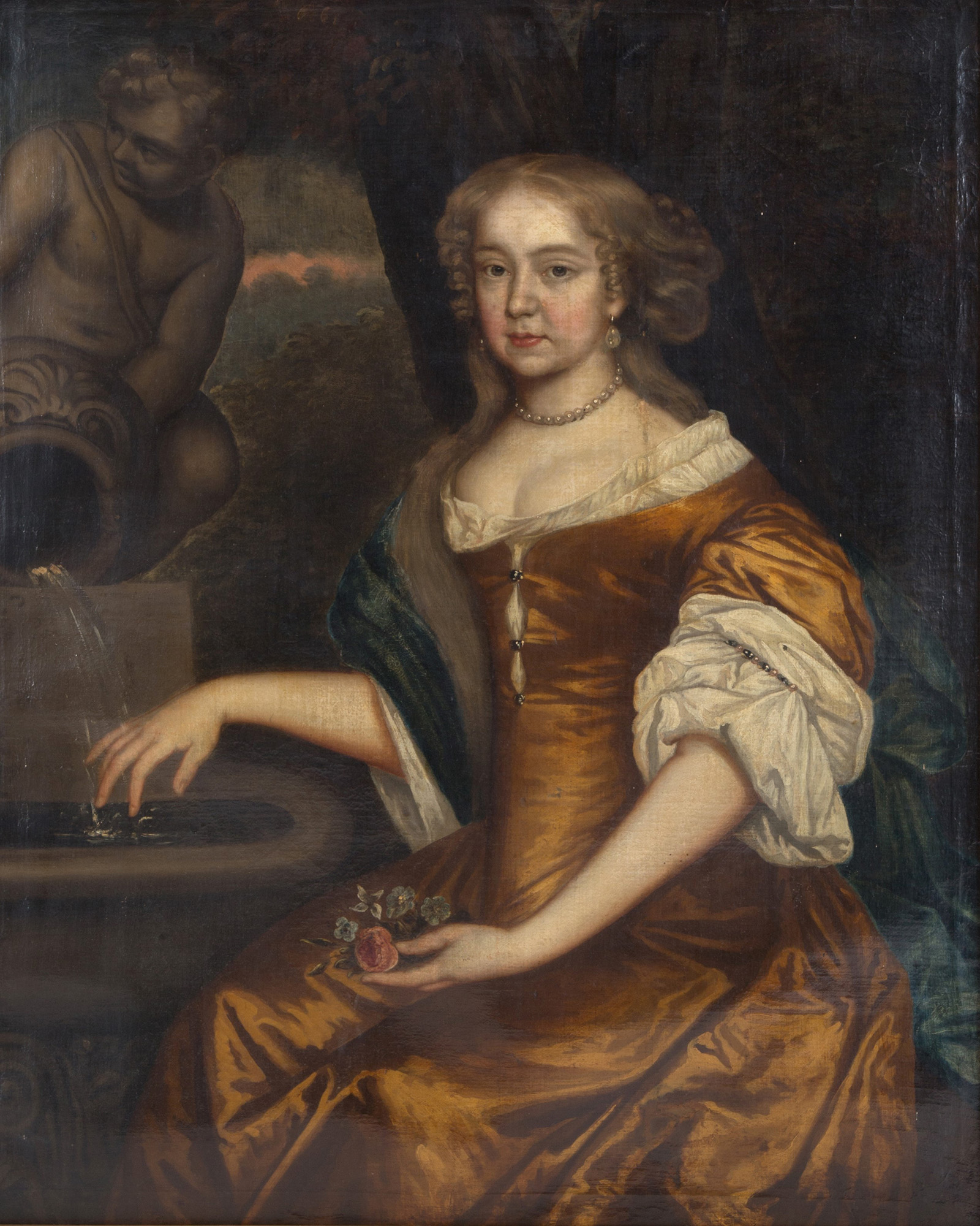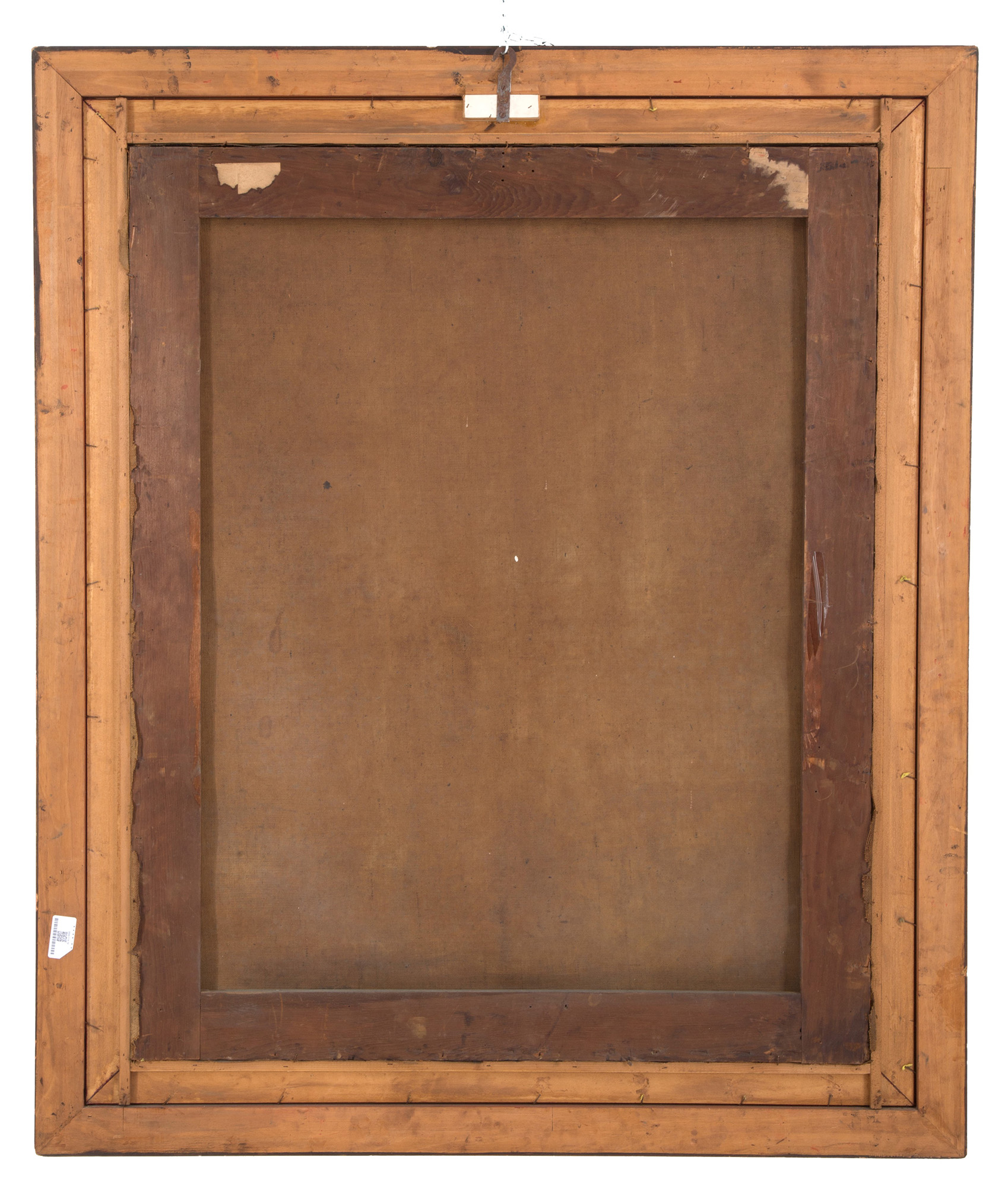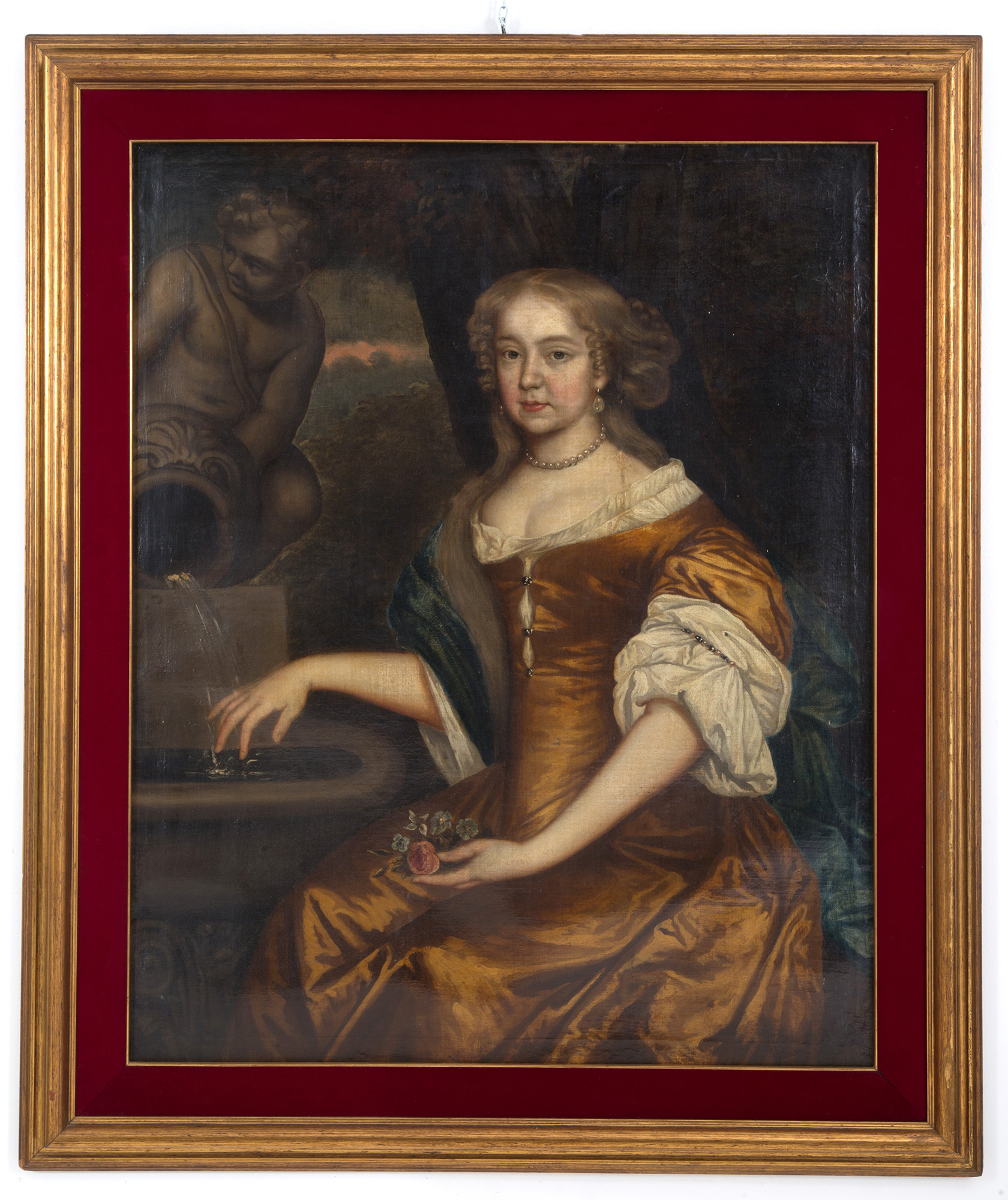 19th CENTURY ENGLISH SCHOOL. Oil painting on canvas depicting "LADY AT THE FOUNTAIN". In frame. Defects and restorations. 123x100cm approx. SCUOLA INGLESE DEL XIX SECOLO. Dipinto olio su tela raffigurante "DAMA ALLA FONTANA". In cornice. Difetti e restauri. 123x100 cm ca.