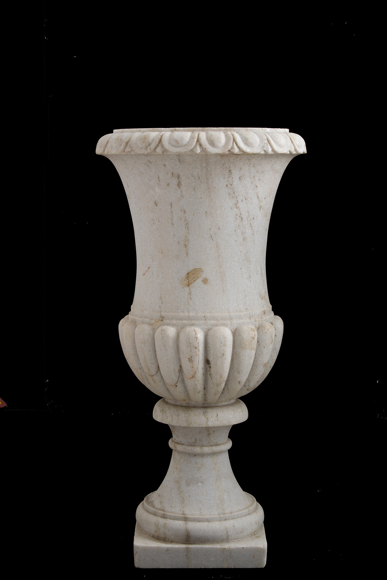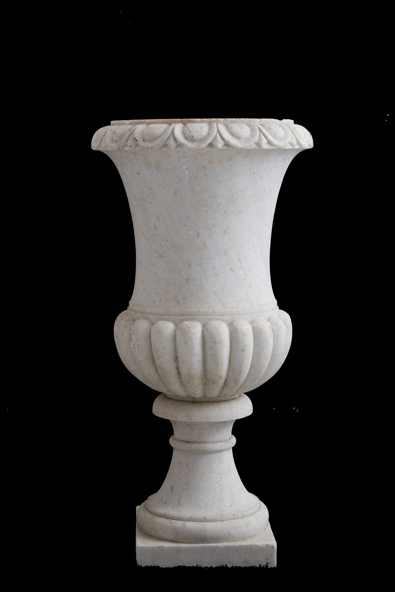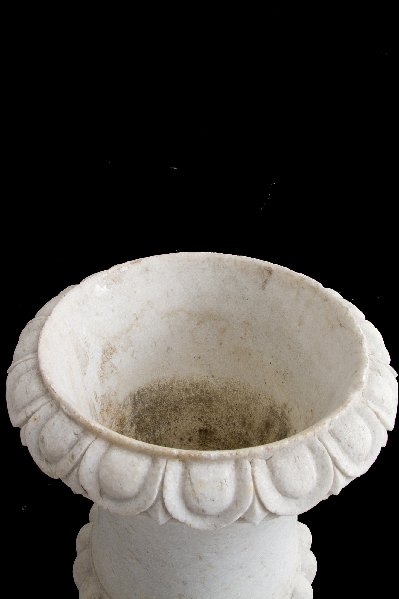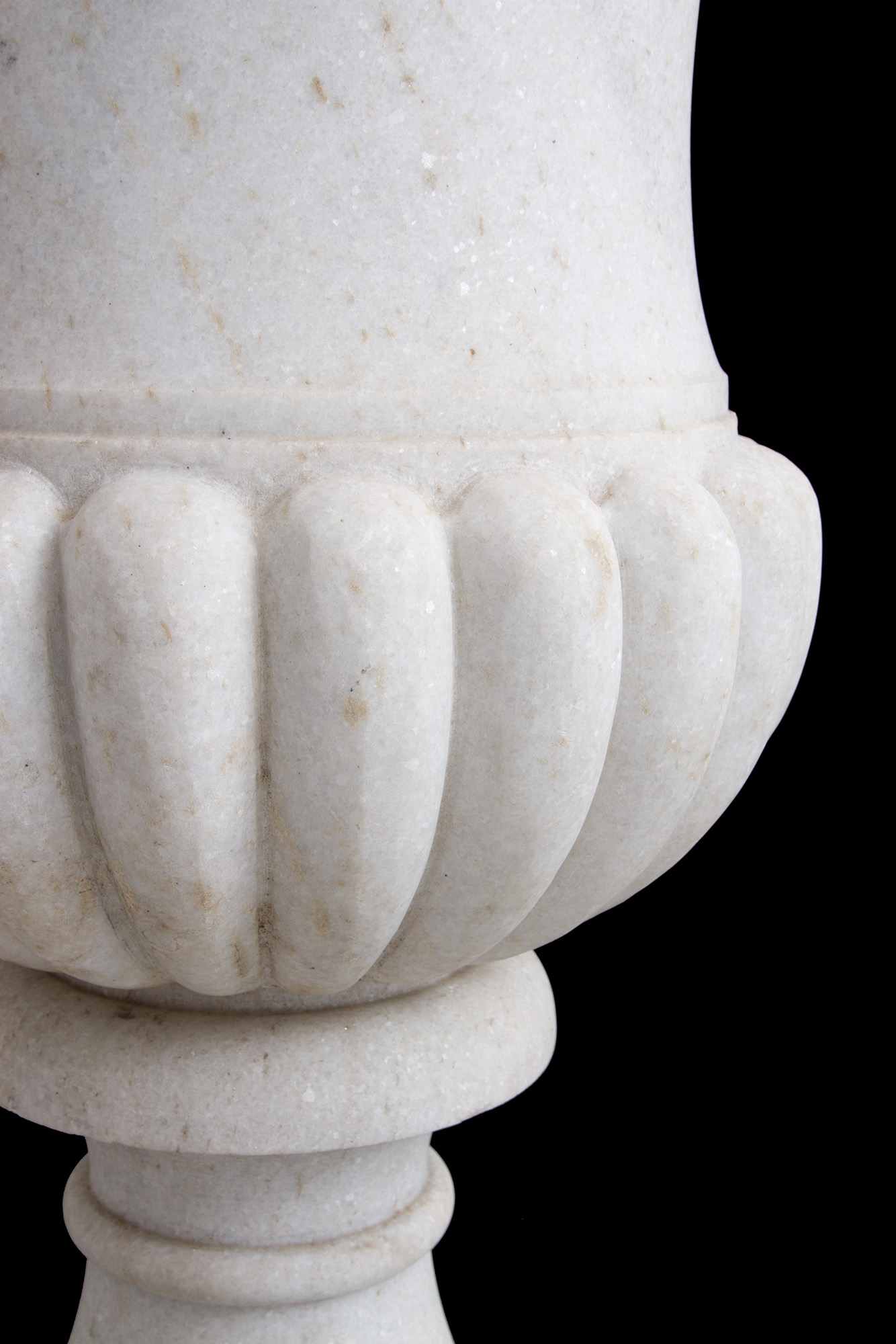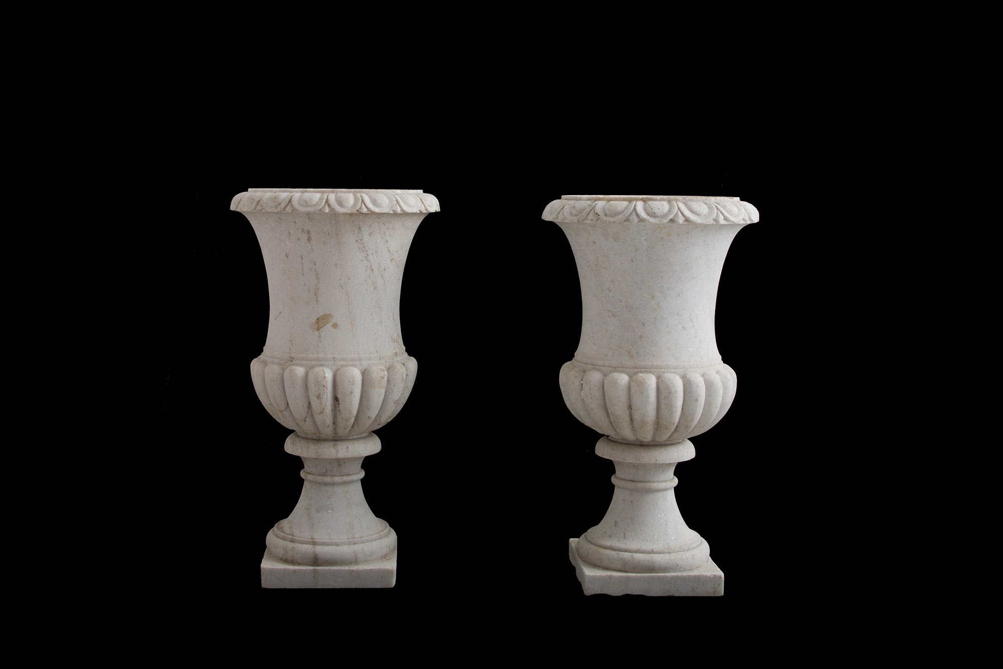 Pair of Medici vases in sugar marble. Late 19th century. Defects. 81x41.5 cm approx. Coppia di vasi medicei in marmo zuccherino. Fine XIX secolo. Difetti. 81x41,5 cm ca.