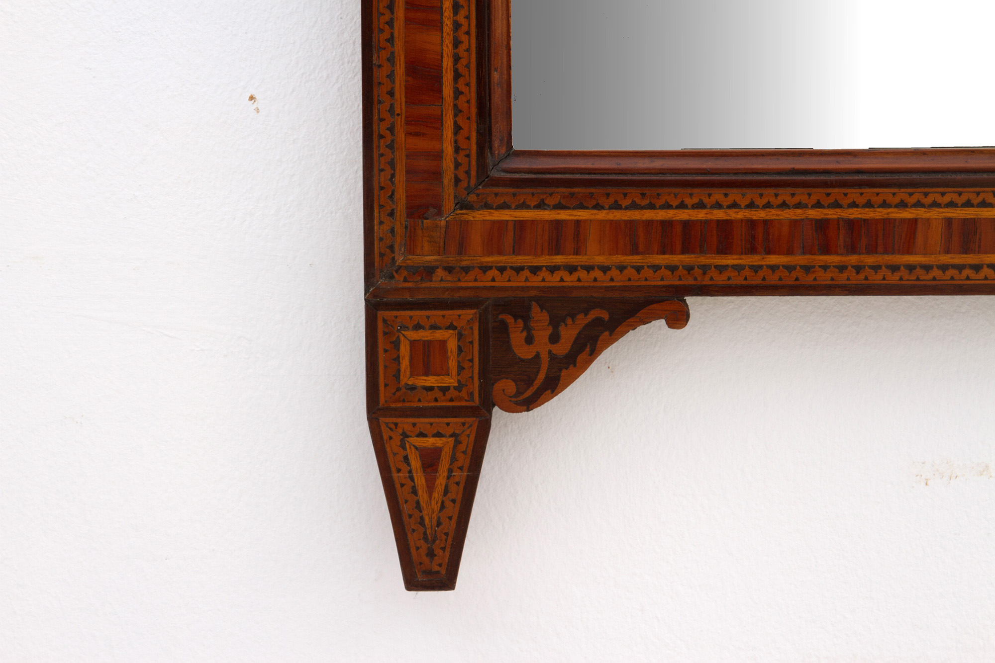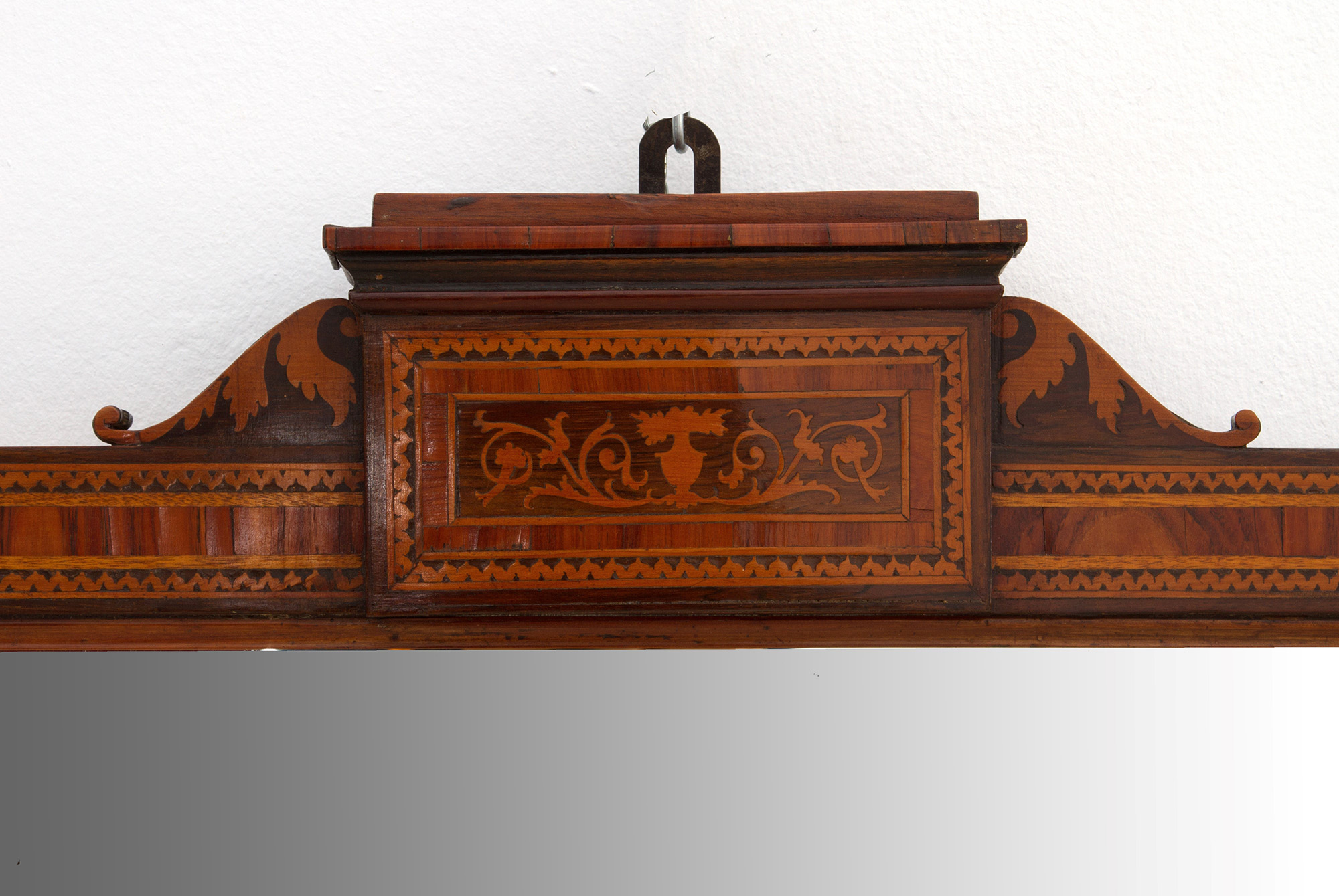 Mirror veneered and inlaid in various woods. Lombardy. 19th century. 83x88 cm approx. Specchiera lastronata e intarsiata in legni vari. Lombardia. XIX secolo. 83x88 cm ca.