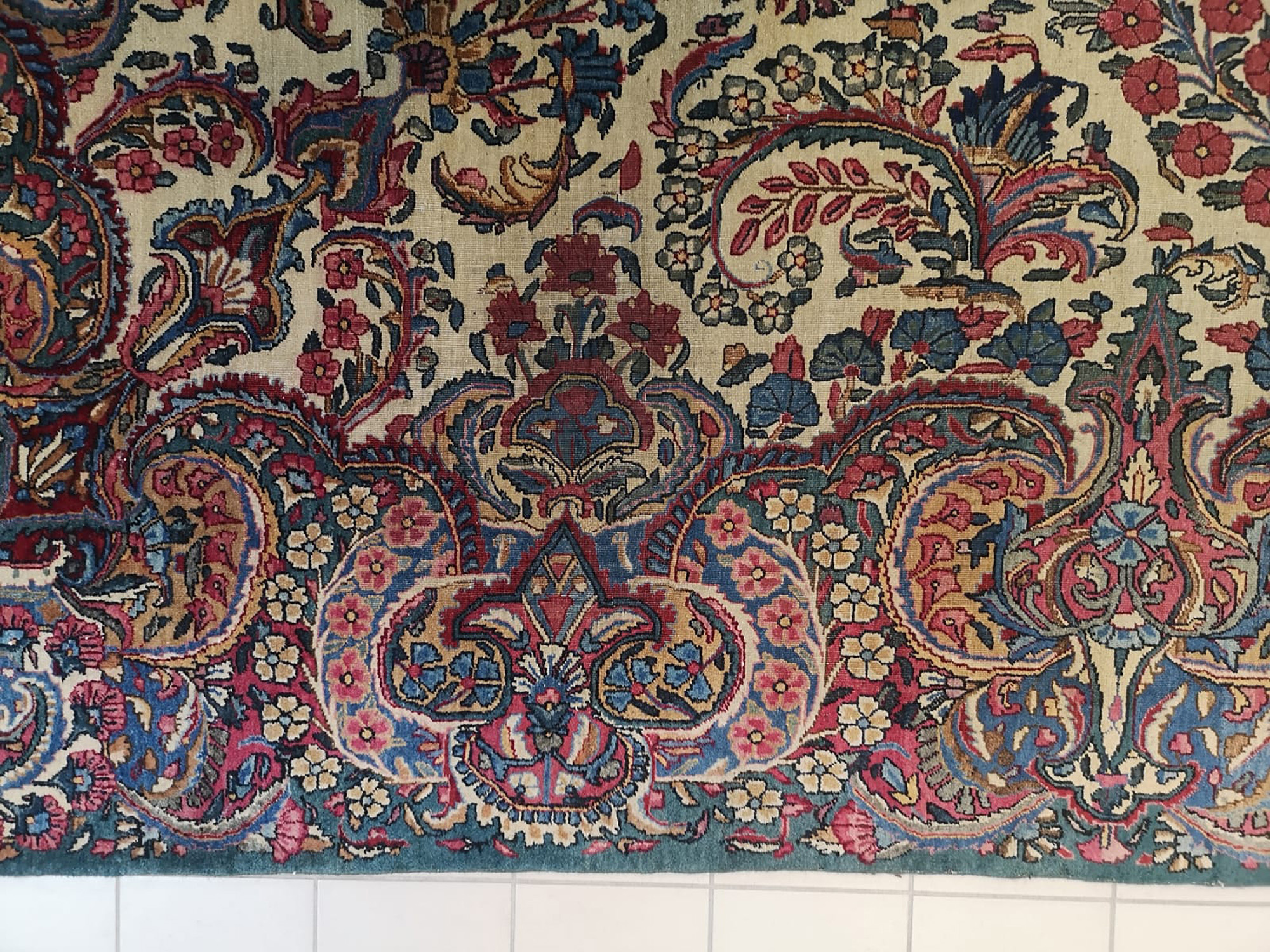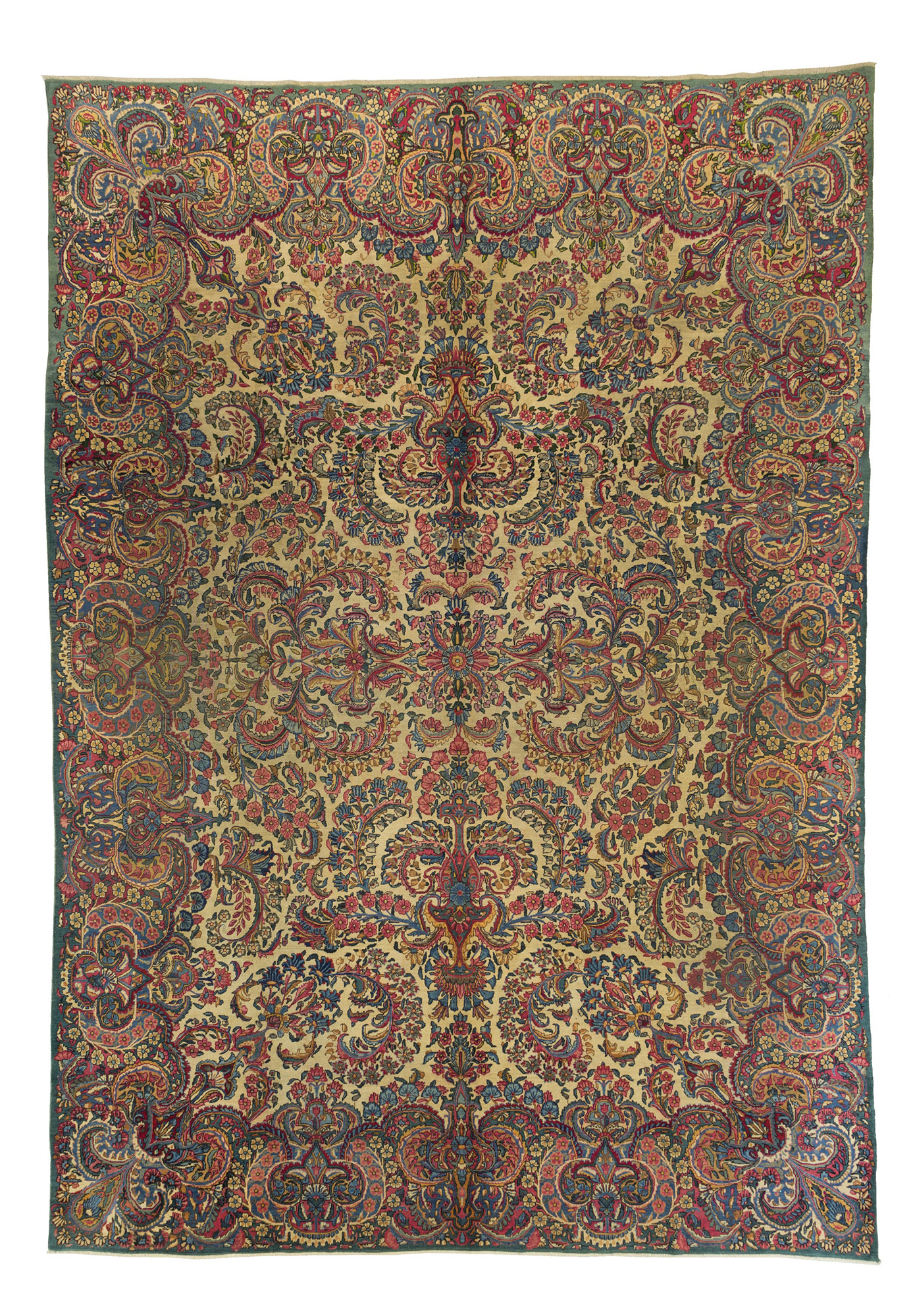 Kirman carpet. Persia. Late 19th century. Excellent state of conservation, small restoration. 420x296 cm approx. Tappeto Kirman. Persia. Fine XIX secolo. Ottimo stato di conservazione, piccolo restauro. 420x296 cm ca.