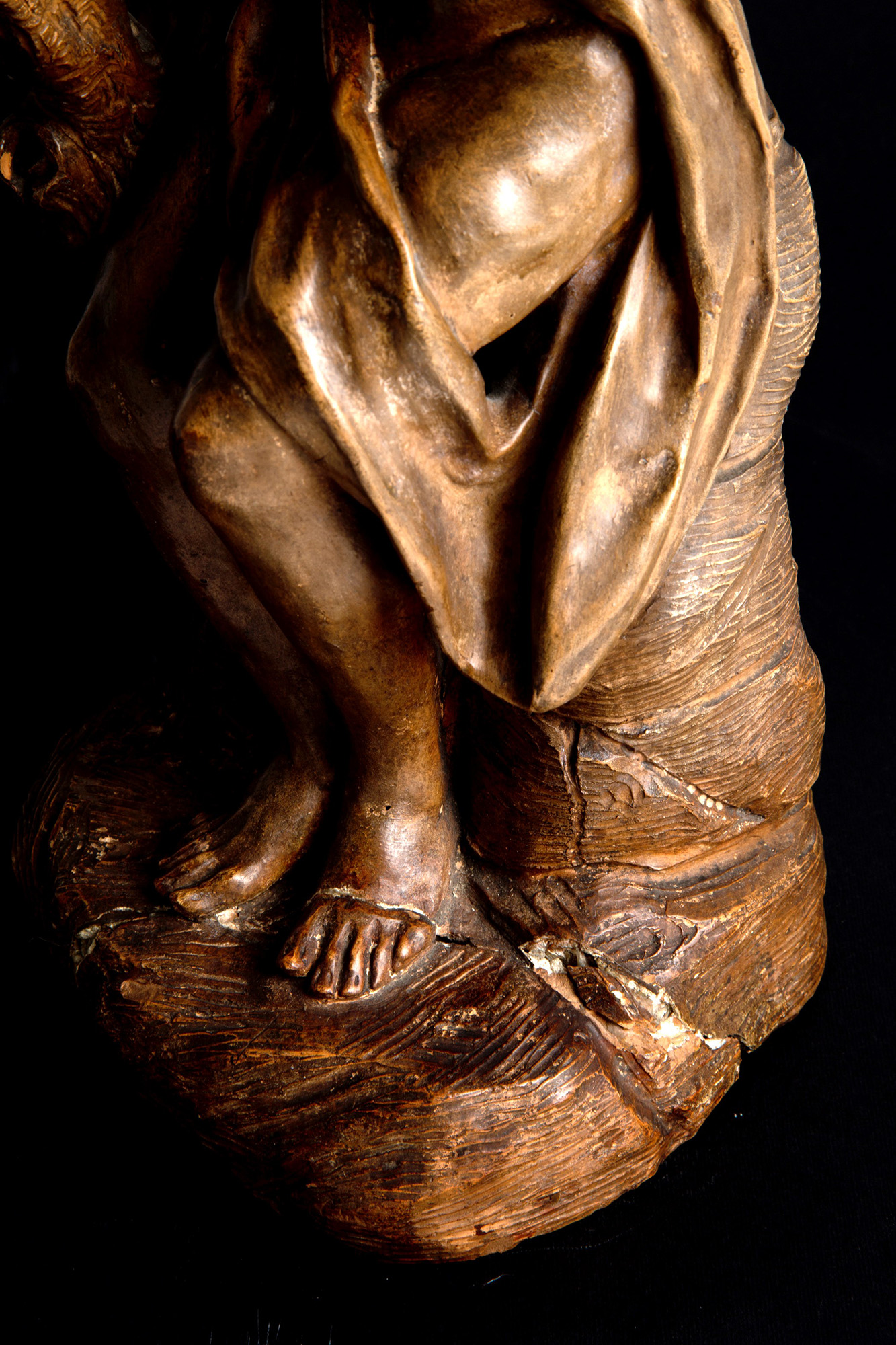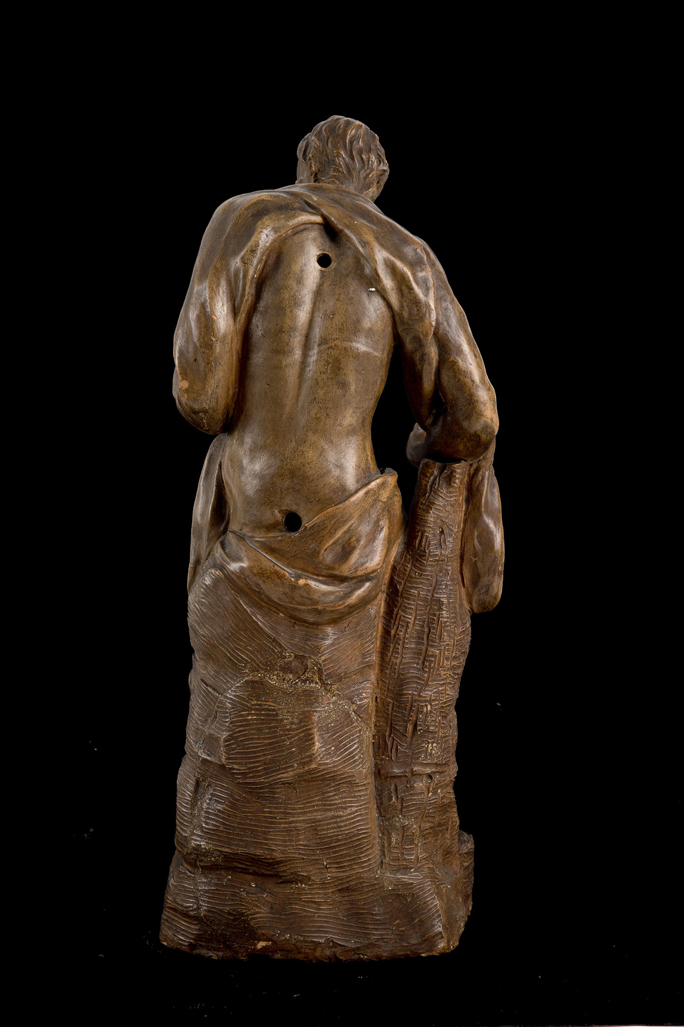 ALESSANDRO VITTORIA (cerchia di) (Trento 1525-Venezia 1608). Patinated terracotta sculpture depicting "SAINT JERO PENITENT". Defects. 39x16x17 cm approx. ALESSANDRO VITTORIA (cerchia di) (Trento 1525-Venezia 1608). Scultura in terracotta patinata raffigurante "SAN GIROLAMO PENITENTE". Difetti. 39x16x17 cm ca.