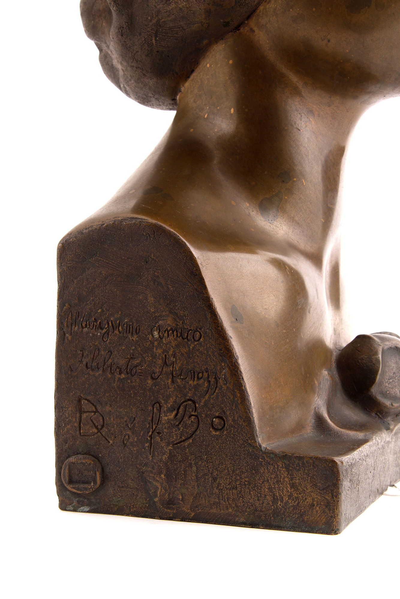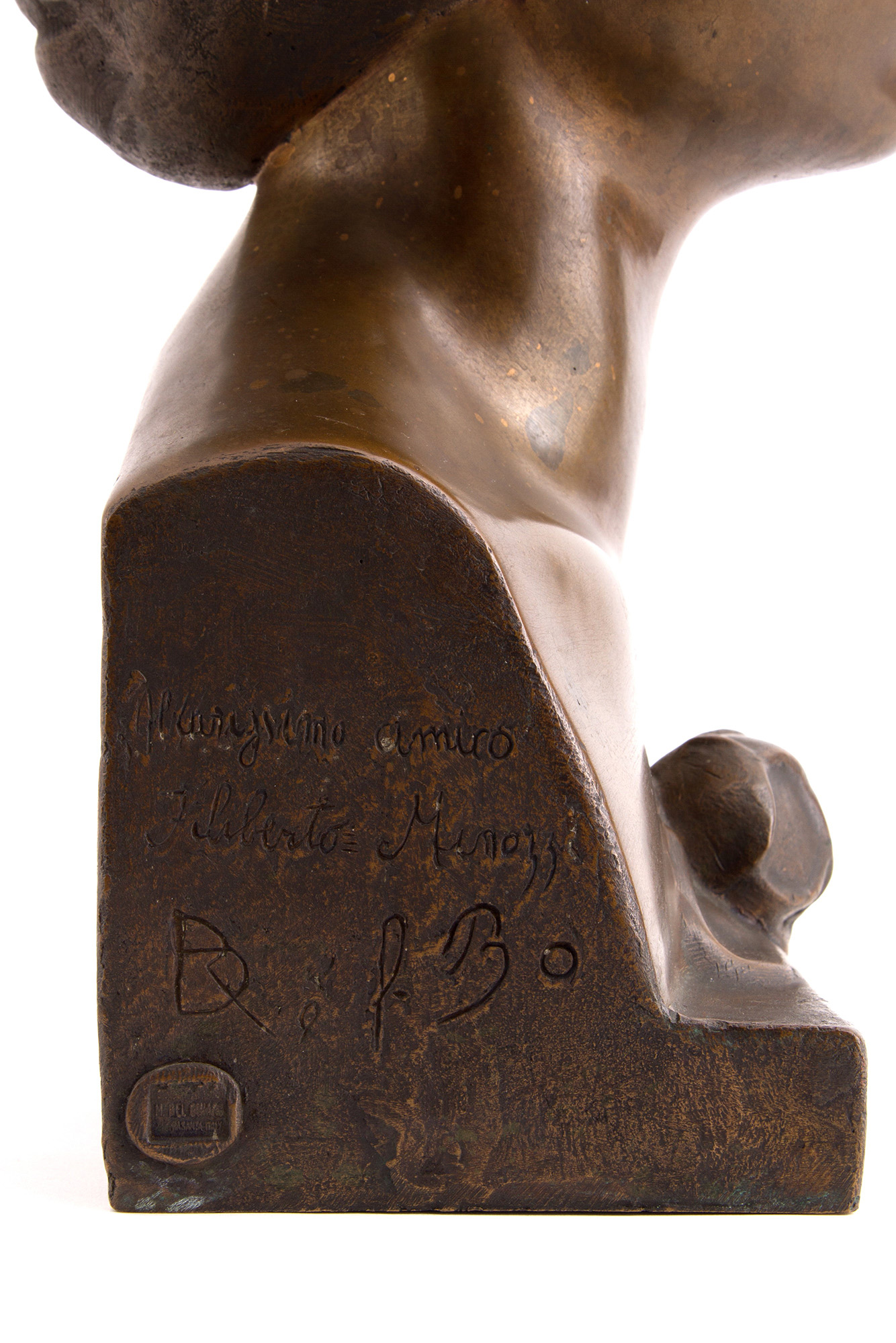 ROMOLO DEL BO (Pavia 1870-Milano 1936). Bronze sculpture depicting "BUST OF A WOMAN". With dedication and signature on the left side. 40x23.5x14 cm approx. ROMOLO DEL BO (Pavia 1870-Milano 1936). Scultura in bronzo raffigurante "BUSTO DI DONNA". Con dedica e firma sul lato sinistro. 40x23,5x14 cm ca.