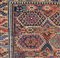 Jaf carpet. Persia. Second half of the 19th century. Published in the "JAF" catalogue, 2009 by James Cohen. Fleece carpet, a headboard to be restored, very small spots already restored on the field and the dark brown color oxidized. 222x115 cm approx. Tappeto Jaf. Persia. Seconda meta' del XIX secolo. Pubblicato sul catalogo "JAF", 2009 di James Cohen. Tappeto in vello, una testata da restaurare, sul campo piccolissimi punti gia' restaurati e il colore marrone scuro ossidato. 222x115 cm ca.